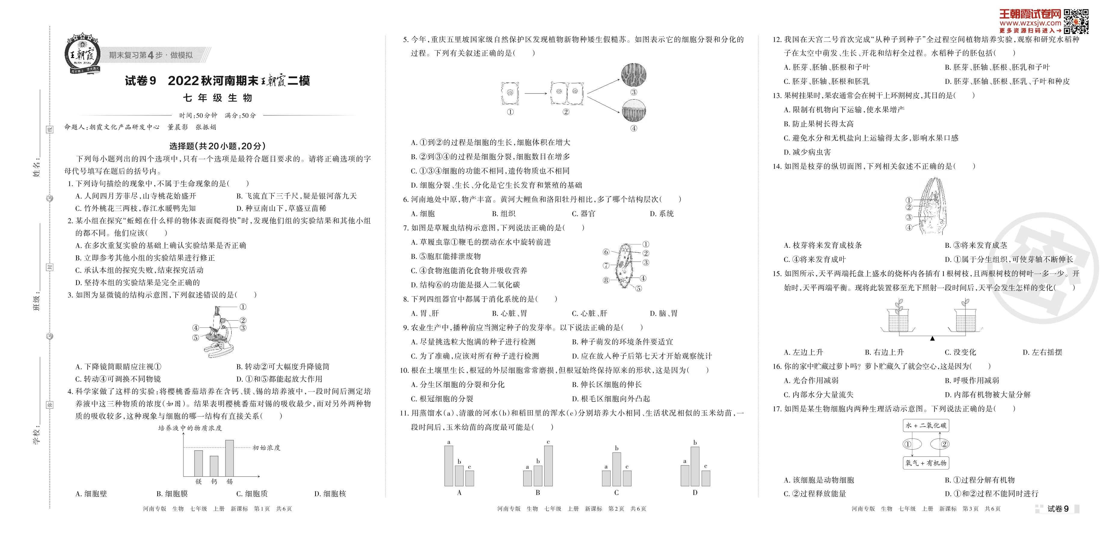 王朝霞期末模拟卷七年级上册生物(新课标版)【9】