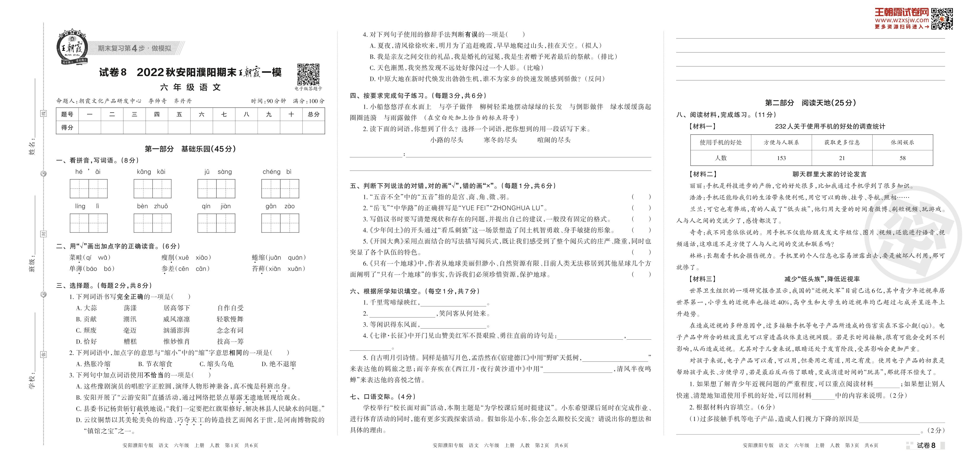 王朝霞期末模拟卷六年级上册语文(人教版)_R221116172939430【8】