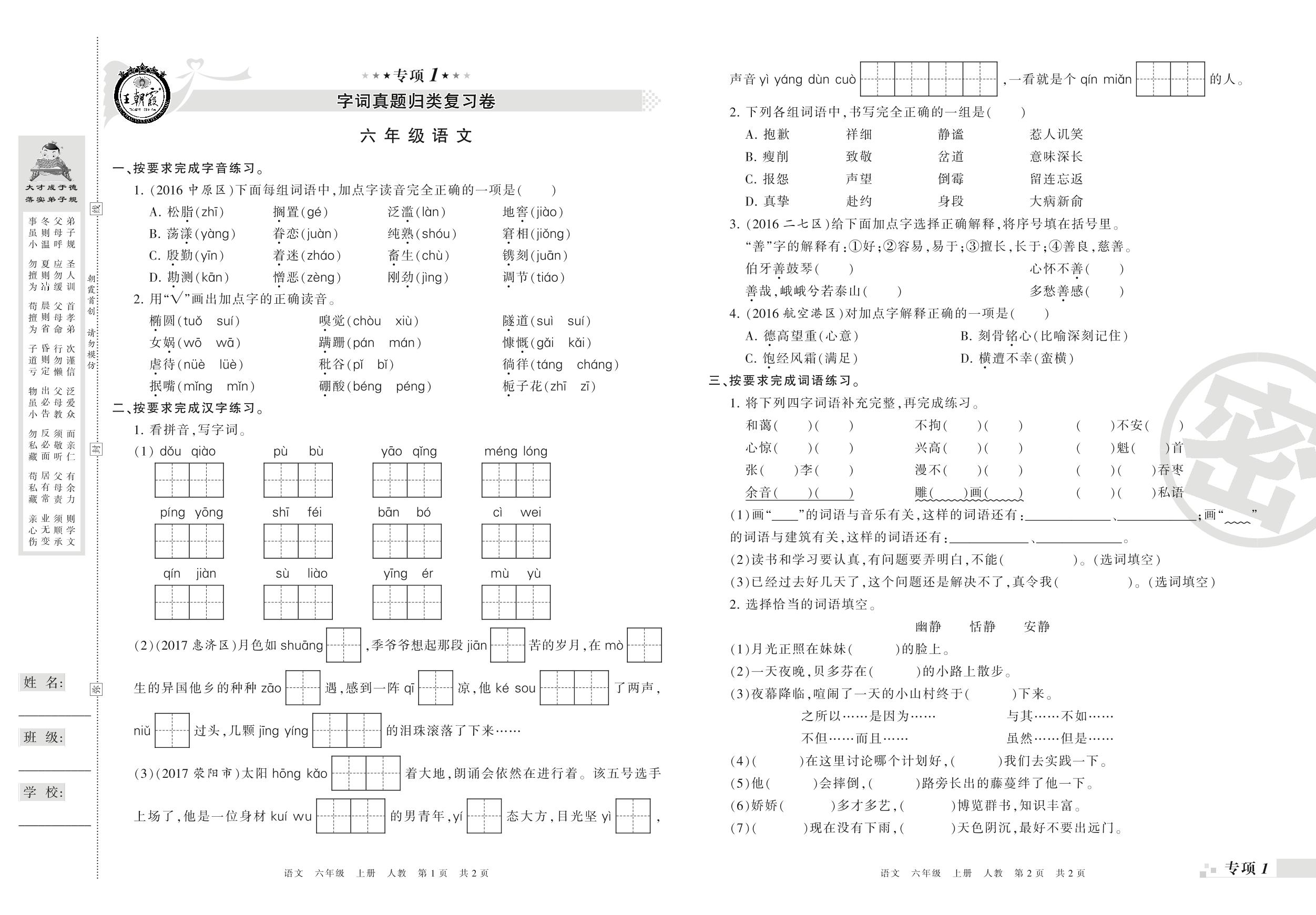王朝霞期末专项卷——字词、句子真题归类复习卷六年级上册语文(人教版)_R210802114355【0】