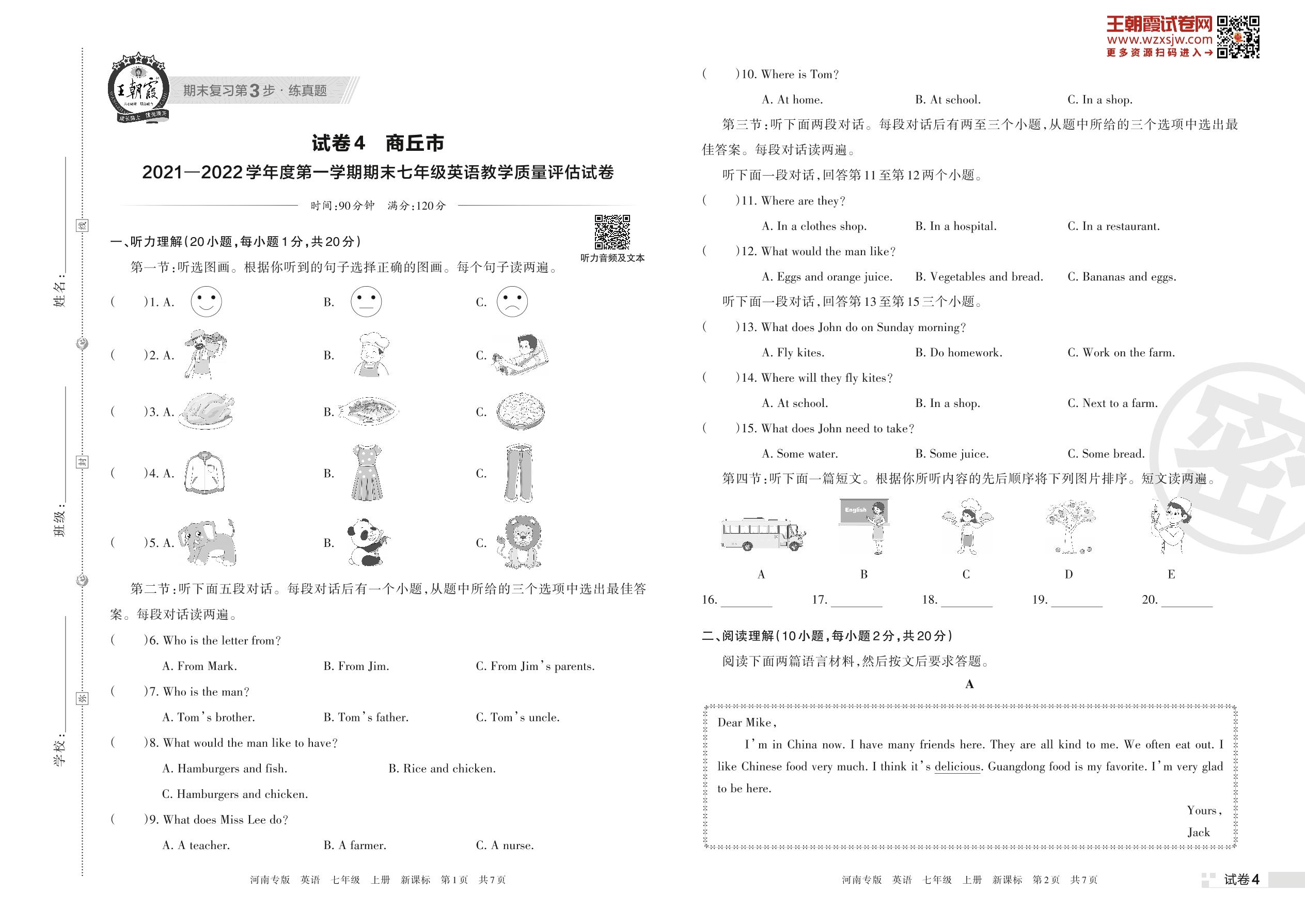 商丘市2021—2022学年度第一学期期末七年级英语教学质量评估试卷(新课标版)【4】