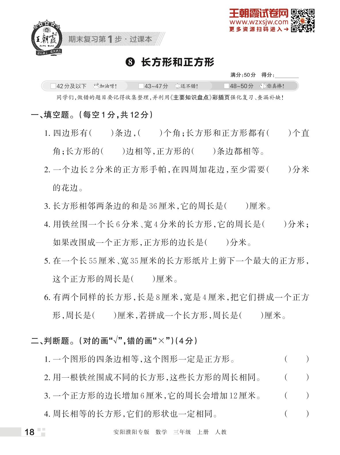 王朝霞期末过课本——8 长方形和正方形三年级上册数学(人教版)_R221116173640963