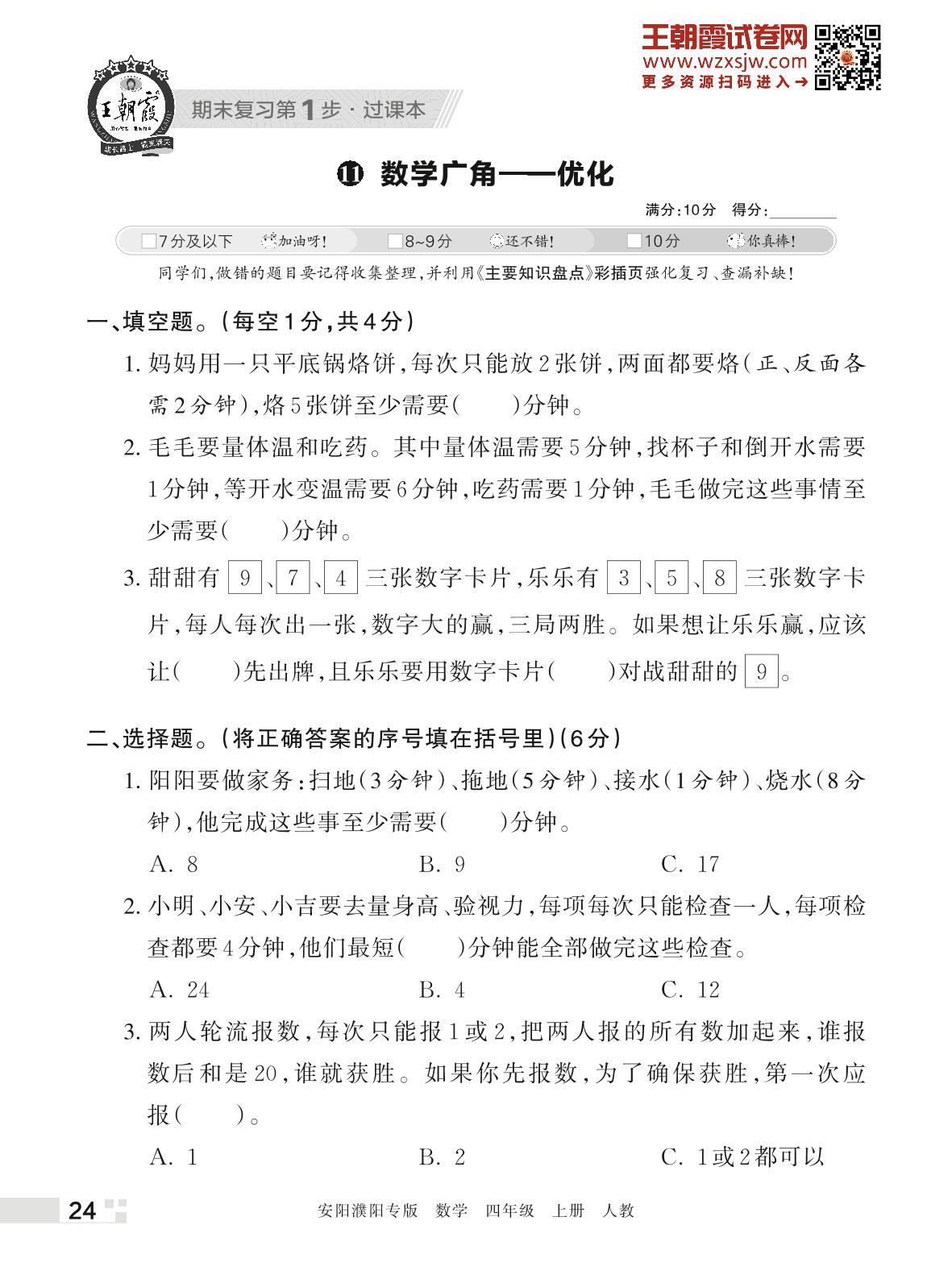 王朝霞期末过课本——11 数学广角:优化四年级上册数学(人教版)_R221116174344835