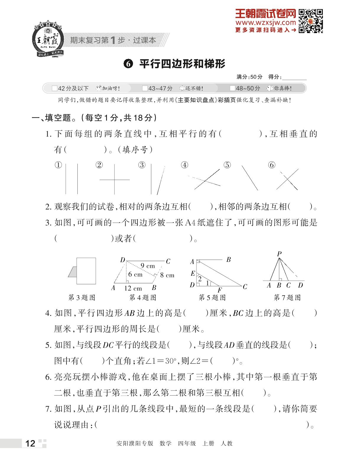王朝霞期末过课本——6 平行四边形和梯形四年级上册数学(人教版)_R221116174344242