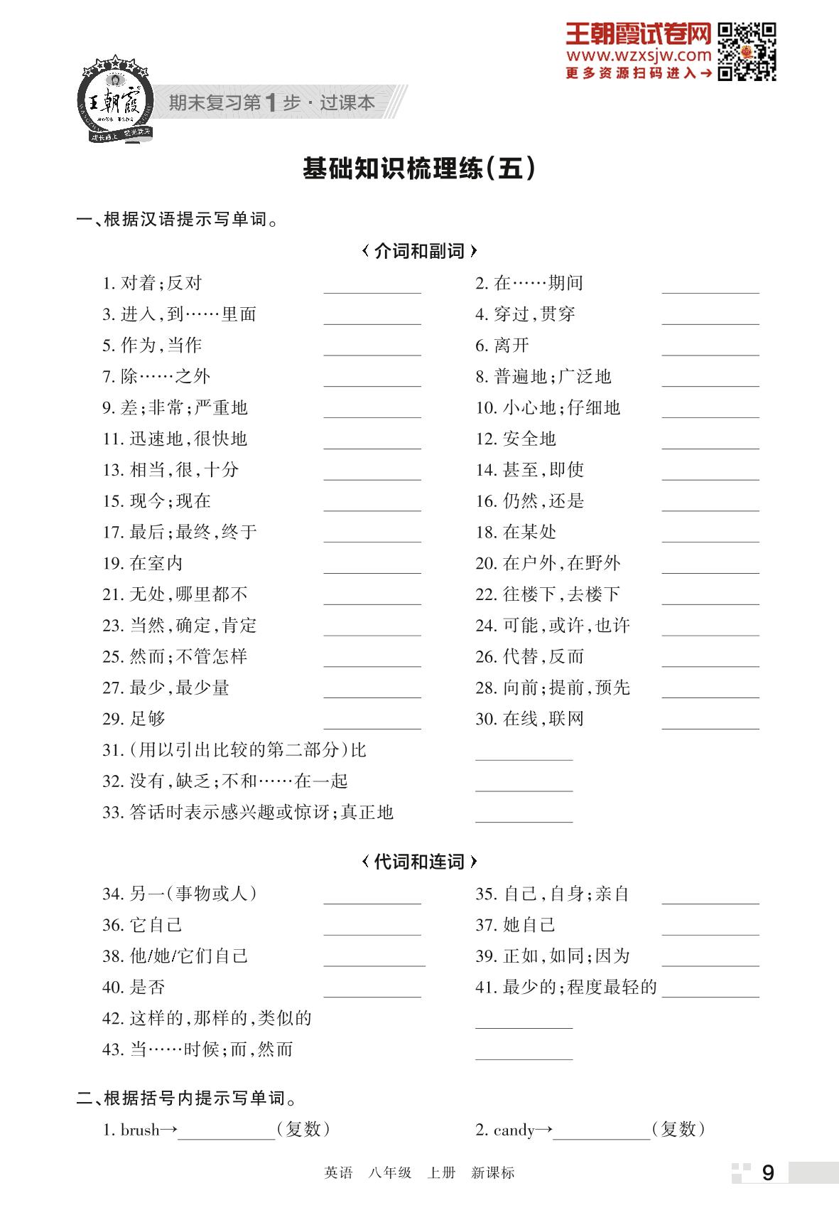 王朝霞期末过课本——基础知识梳理练(五)八年级上册英语(新课标版)