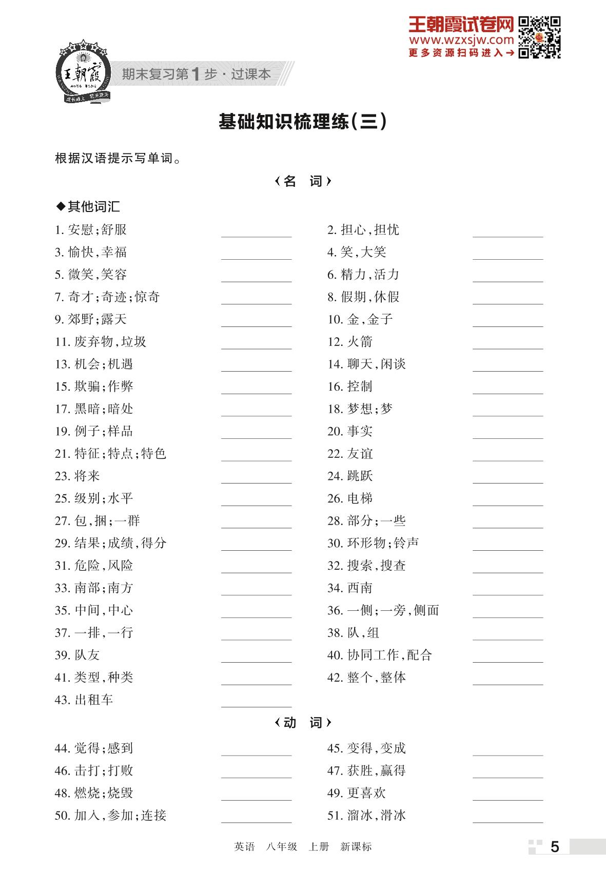 王朝霞期末过课本——基础知识梳理练(三)八年级上册英语(新课标版)