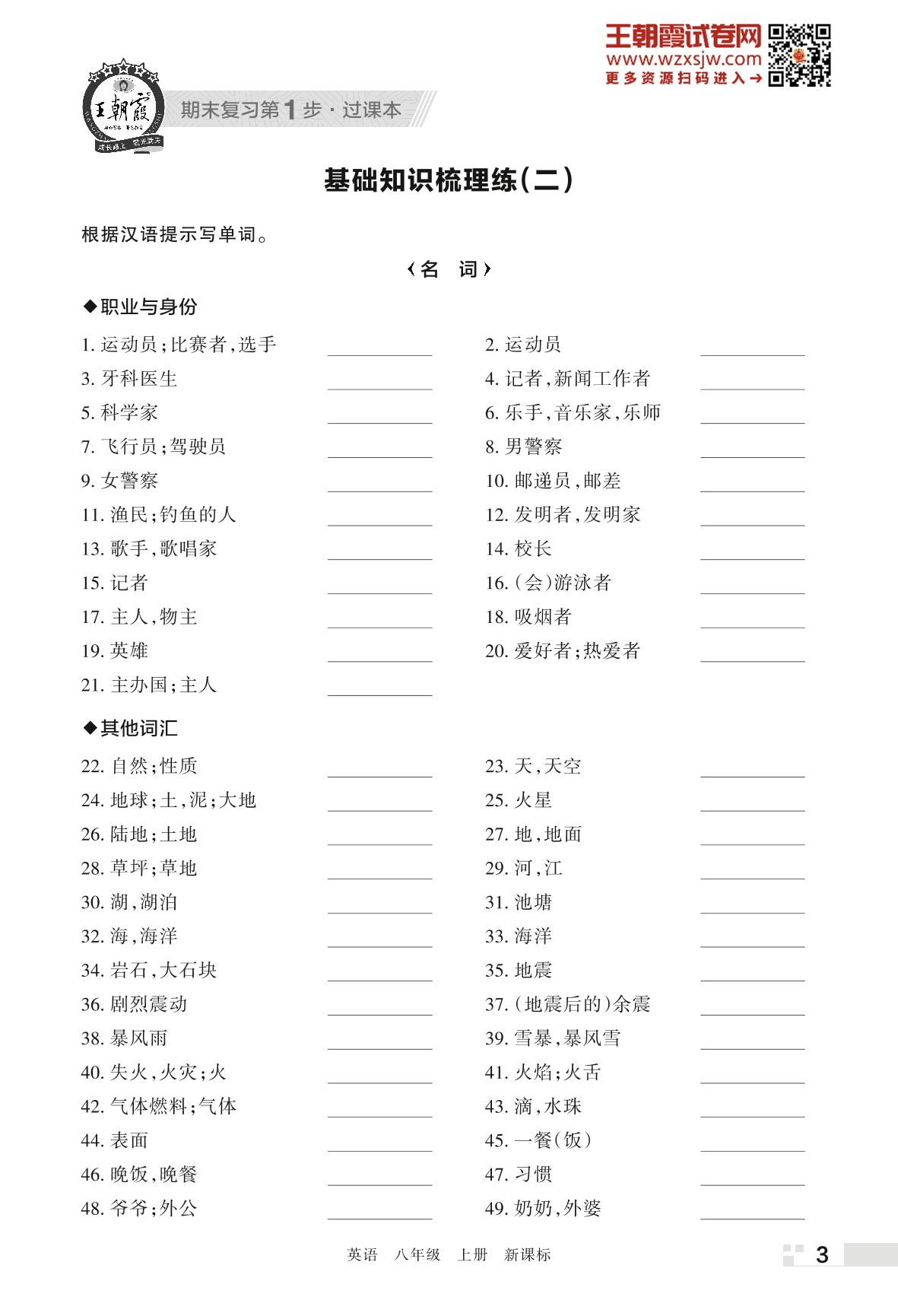 王朝霞期末过课本——基础知识梳理练(二)八年级上册英语(新课标版)