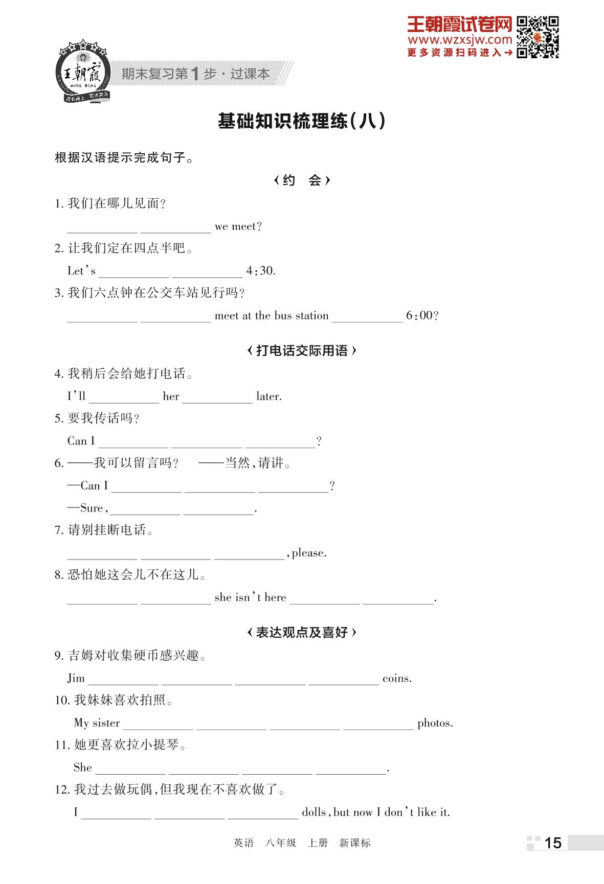 王朝霞期末过课本——基础知识梳理练(八)八年级上册英语(新课标版)