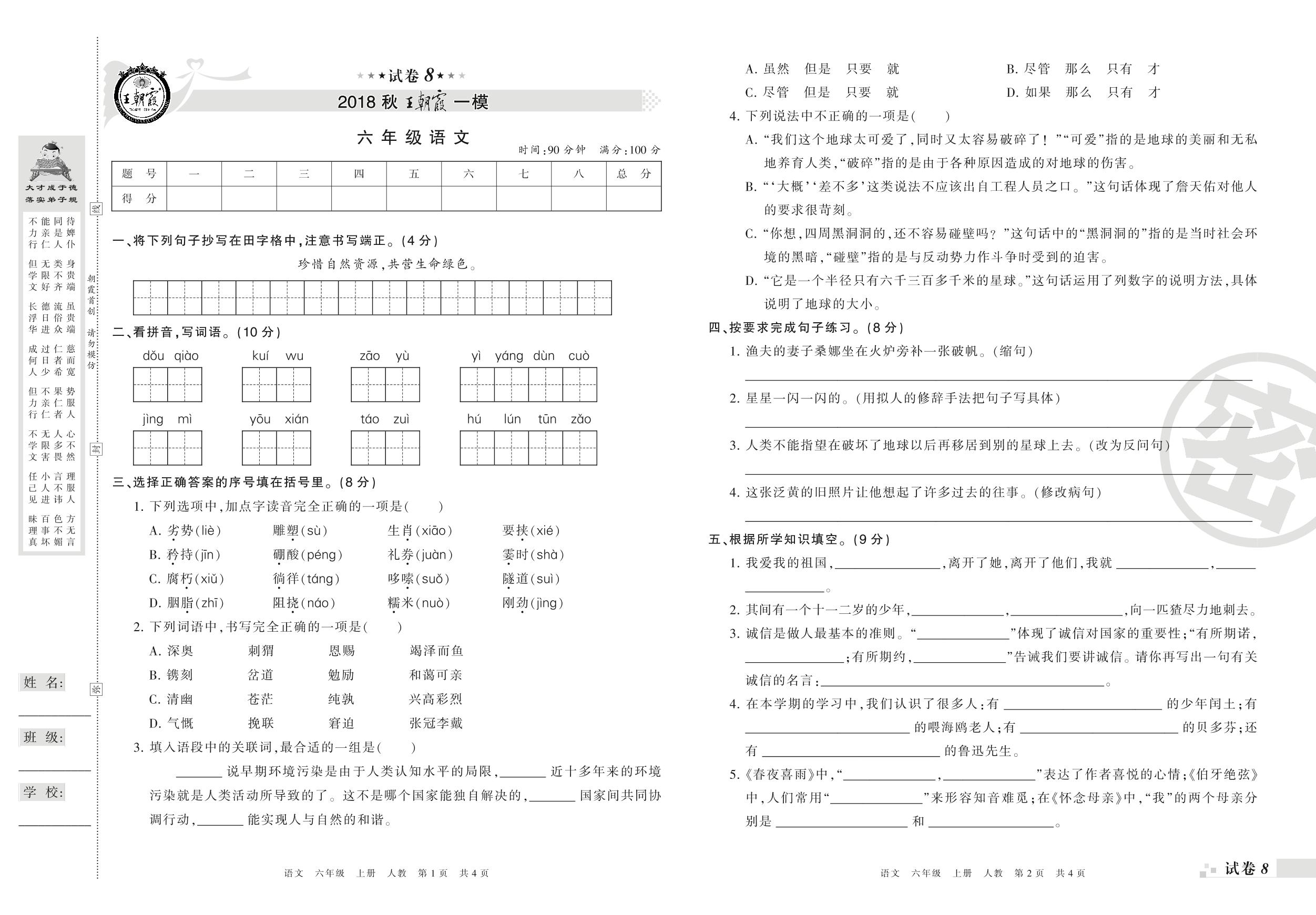 王朝霞期末模拟卷六年级上册语文(人教版)_R210802114530【8】