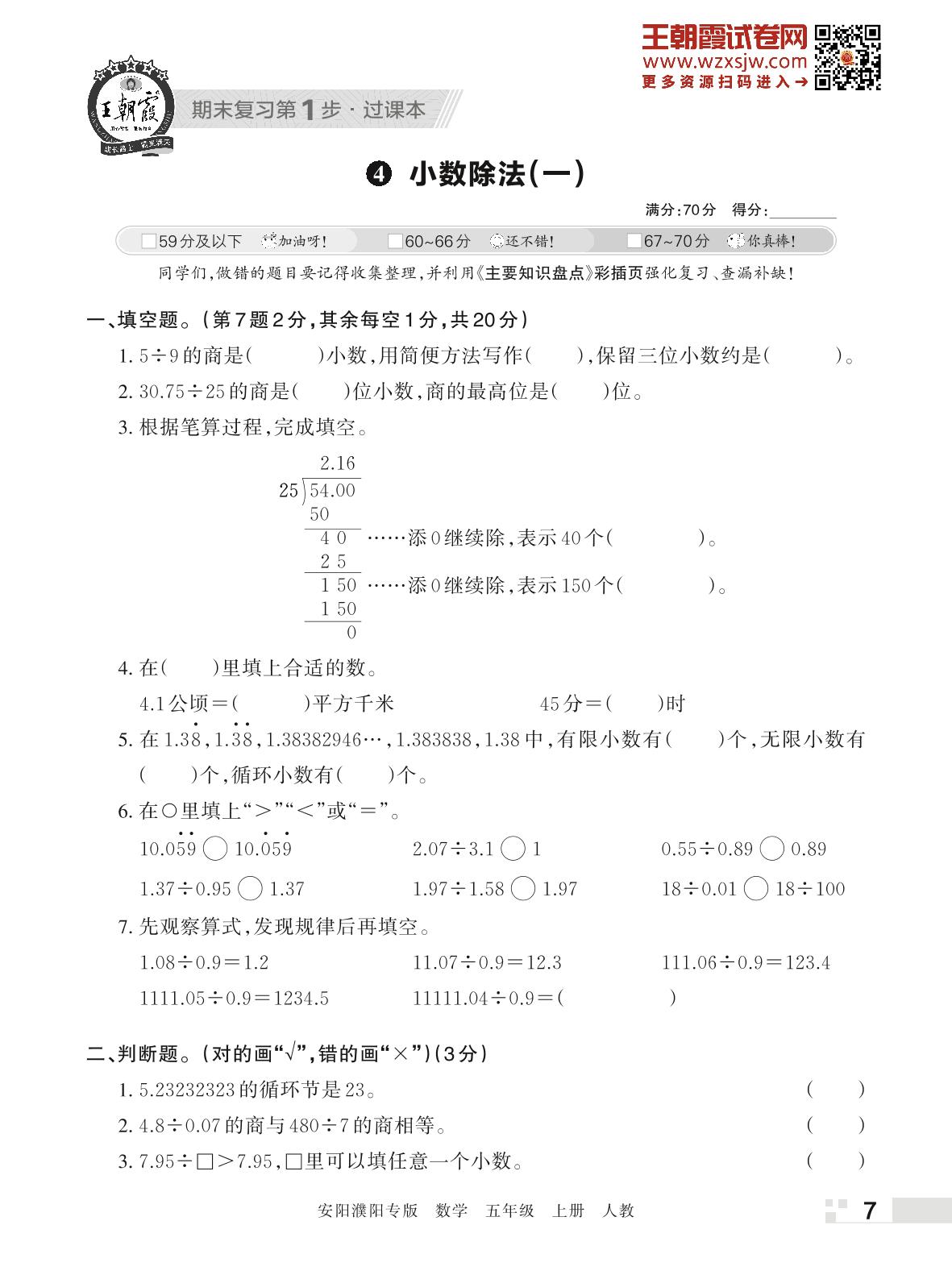王朝霞期末过课本——4 小数除法(一)五年级上册数学(人教版)_R221116175026715