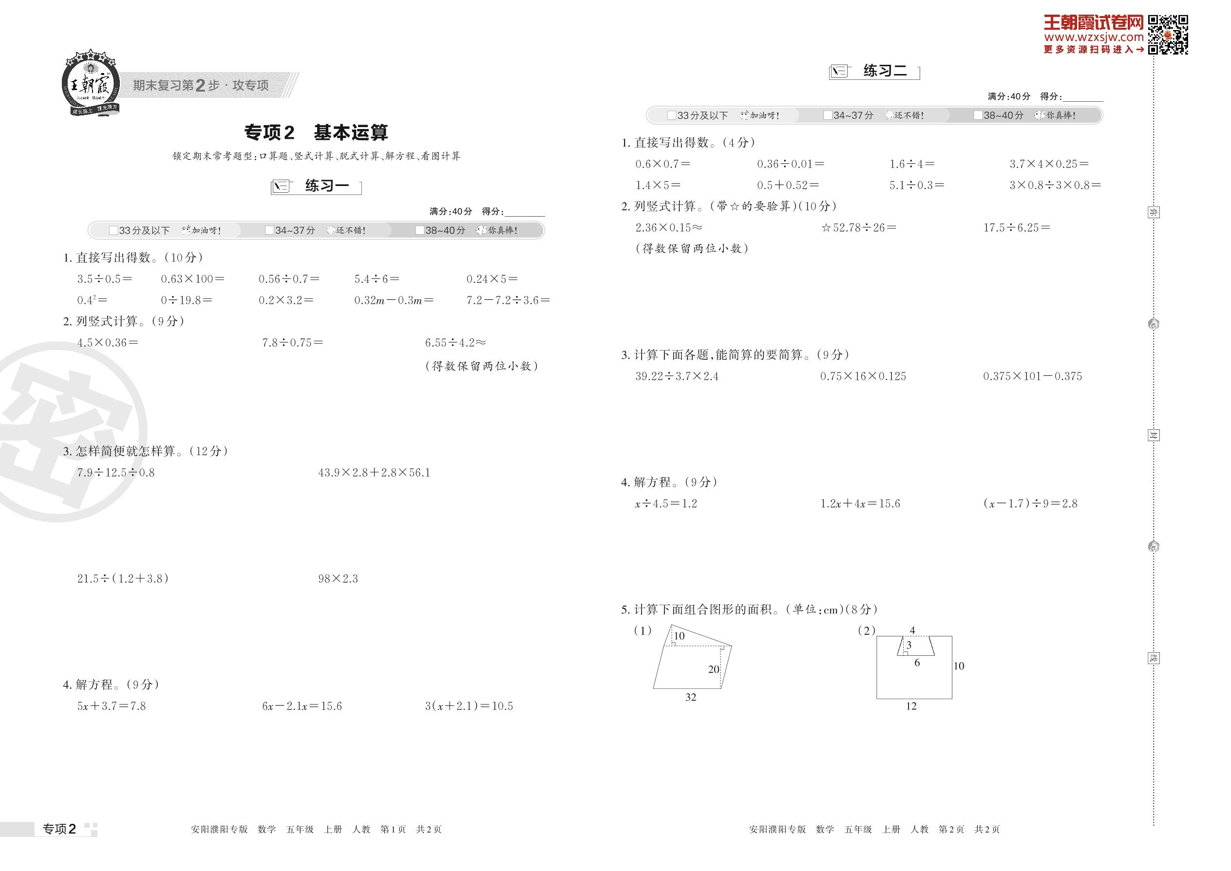 王朝霞期末专项卷——基本运算五年级上册数学(人教版)_R221116175027698【2】