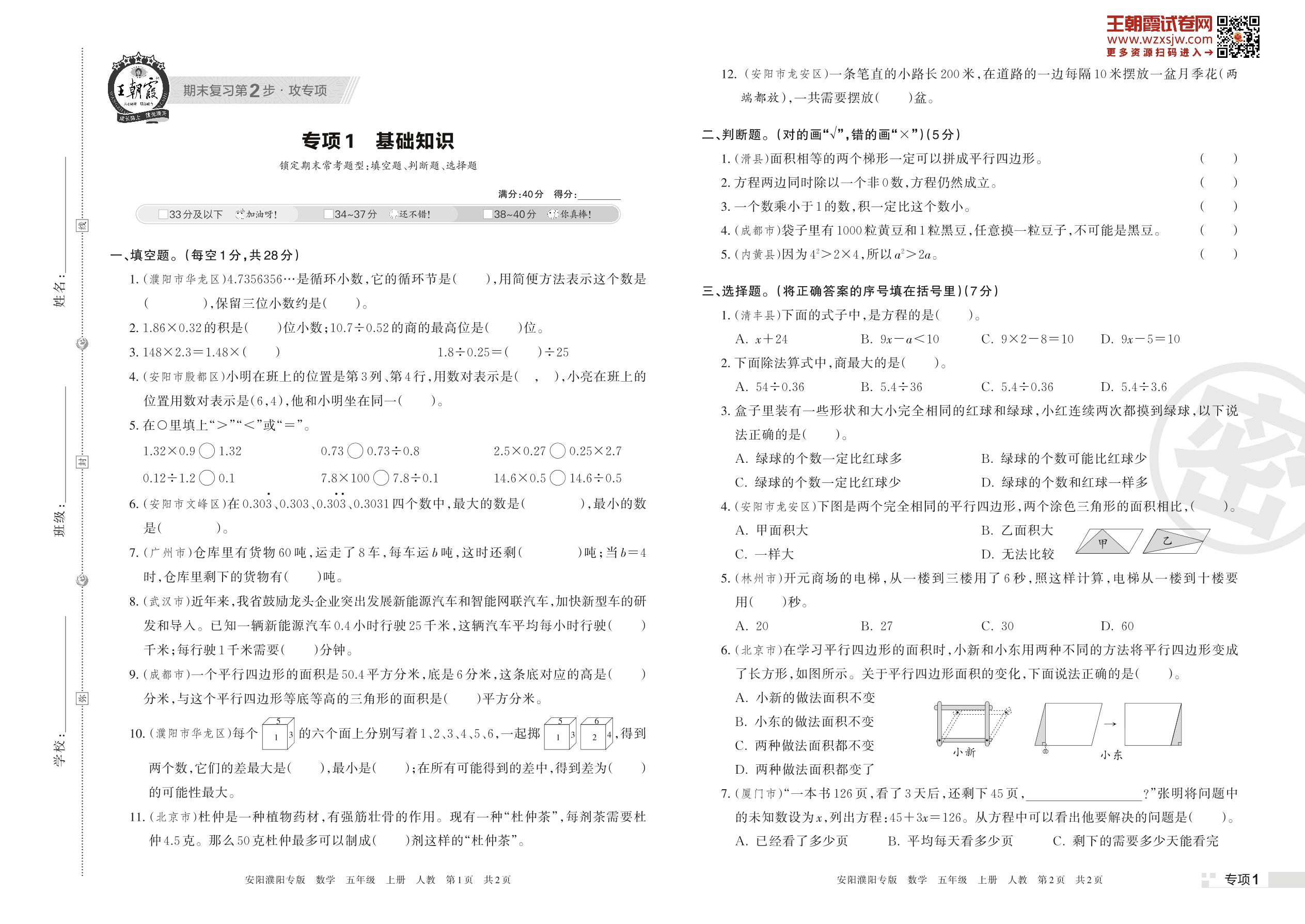 王朝霞期末专项卷——基础知识五年级上册数学(人教版)_R221116175028076【1】