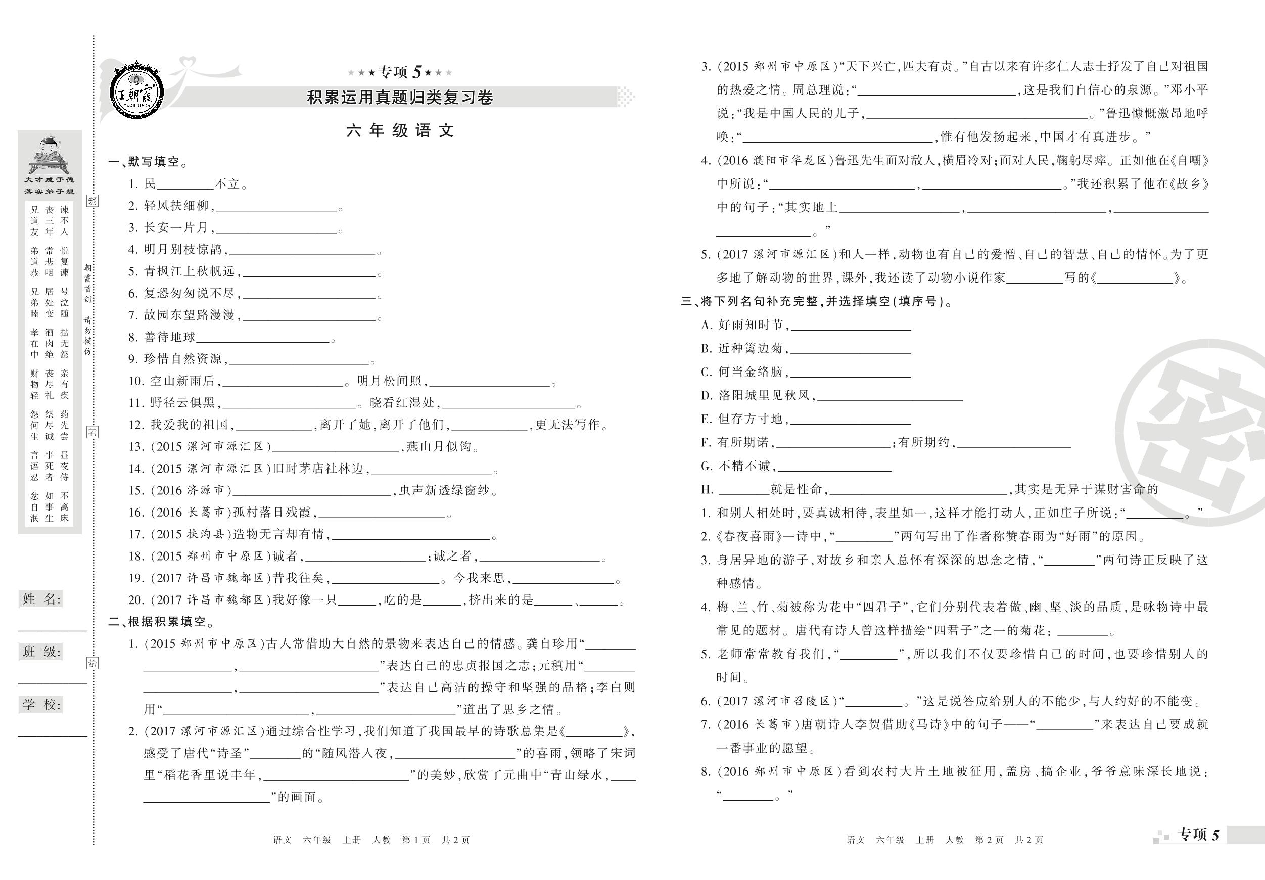 王朝霞期末专项卷——积累运动、课内阅读(一)真题归类复习卷六年级上册语文(人教版)_R210802114556【0】