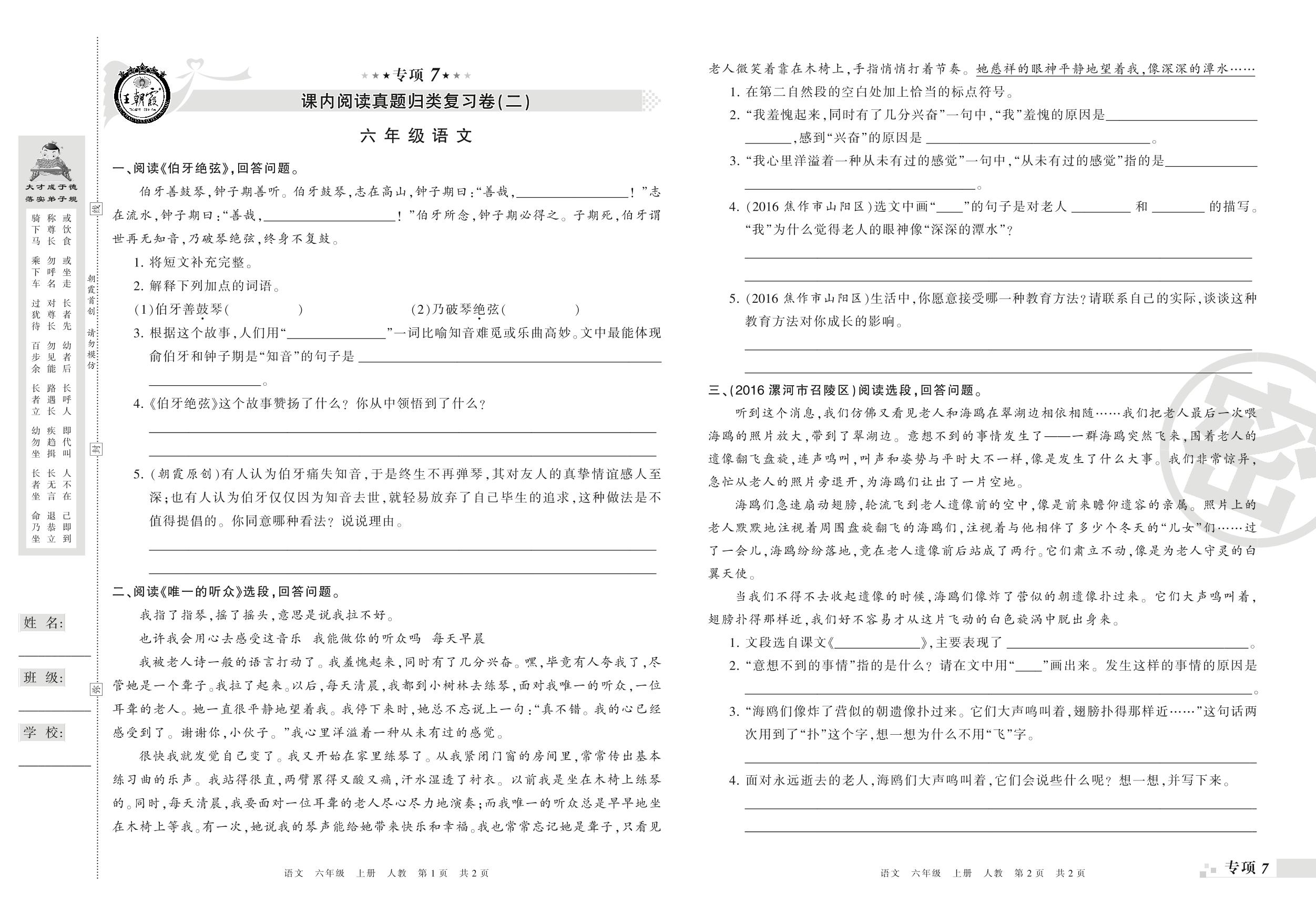 六年级语文人教版上册专项卷