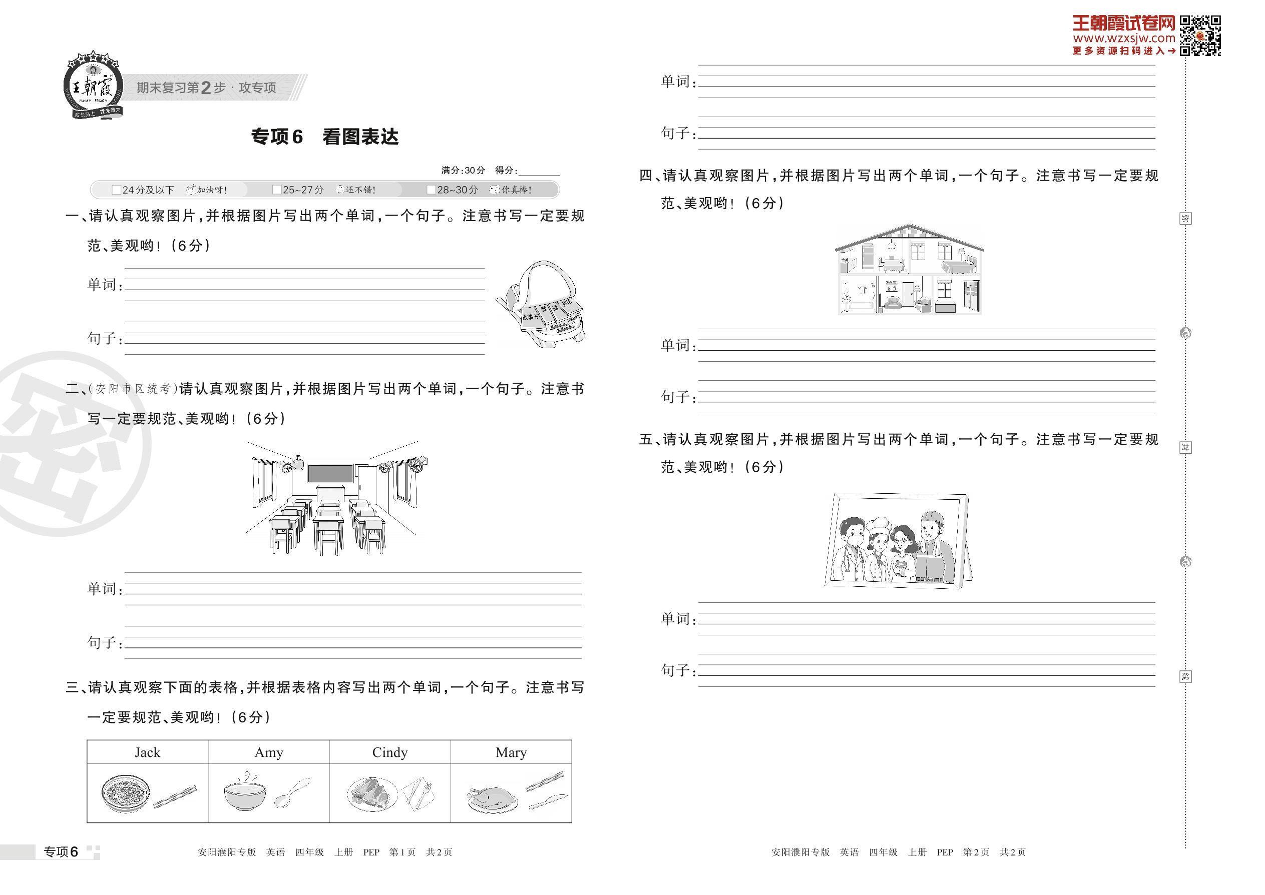 王朝霞期末专项卷——看图表达四年级上册英语(PEP版)【6】