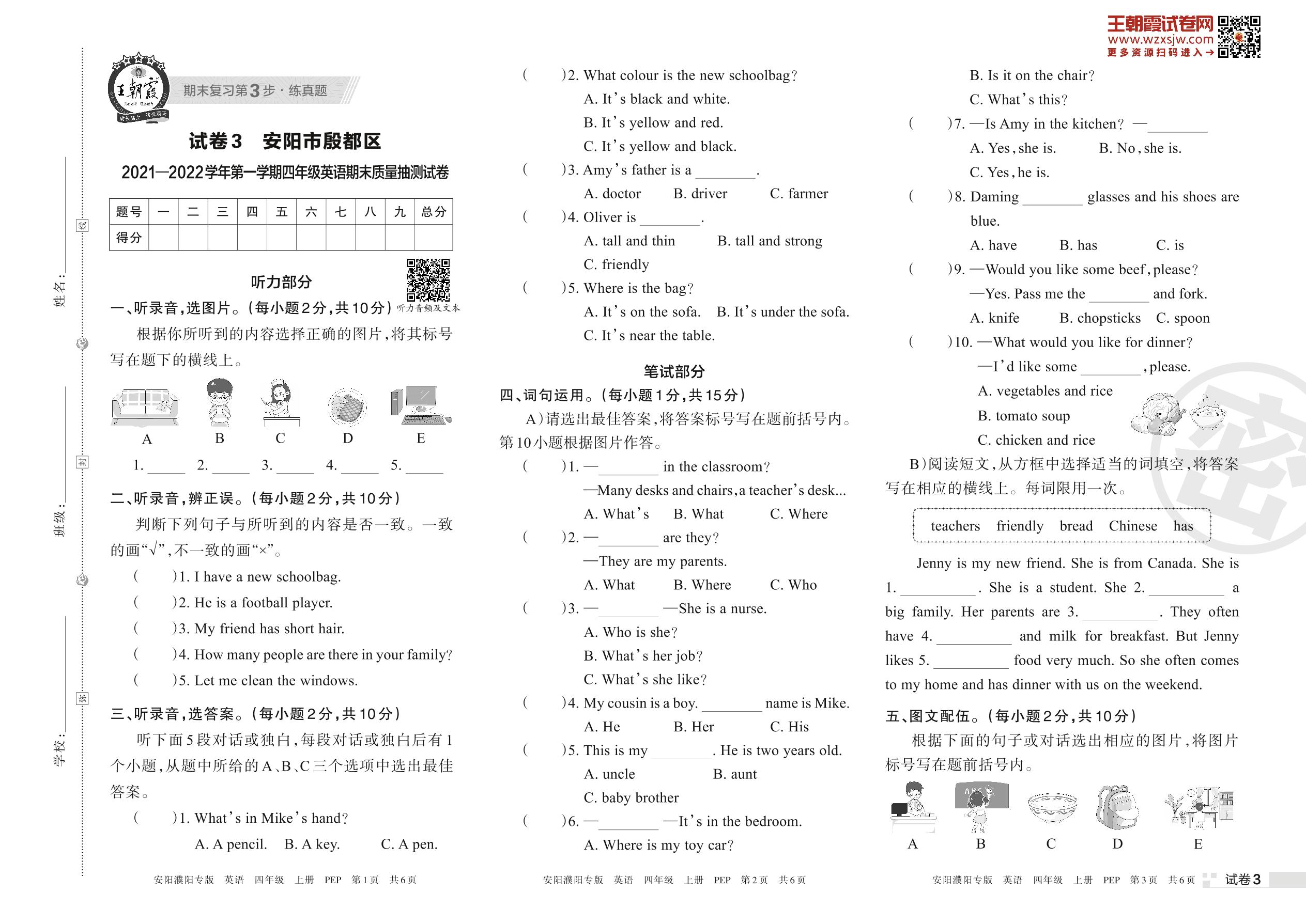 安阳市殷都区2021—2022学年第一学期四年级英语期末质量抽测试卷(PEP版)_R221117085647607【3】