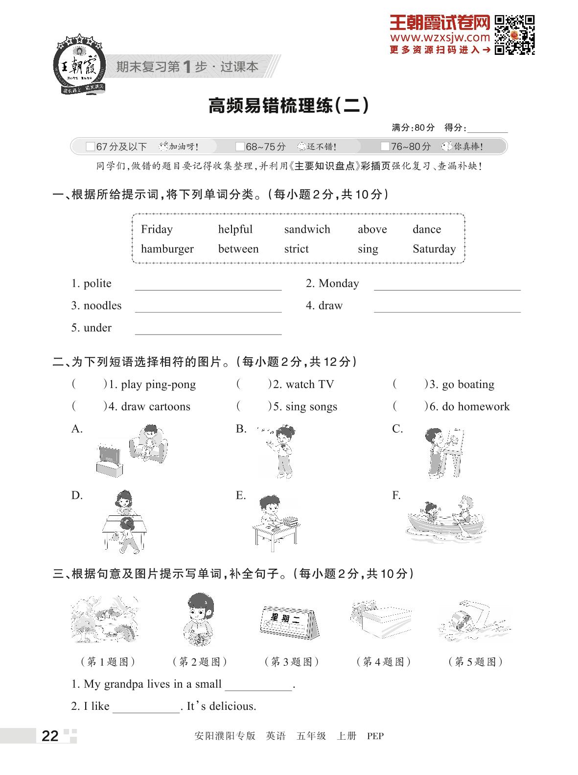 王朝霞期末过课本——高频易错梳理练(二)五年级上册英语(PEP版)_R221117090332810
