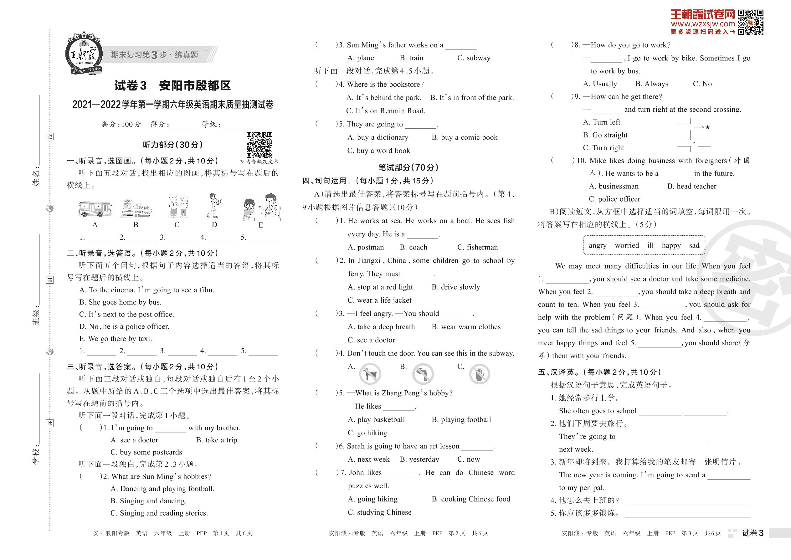 安阳市殷都区2021—2022学年第一学期六年级英语期末质量抽测试卷(PEP版)_R221117091026743【3】