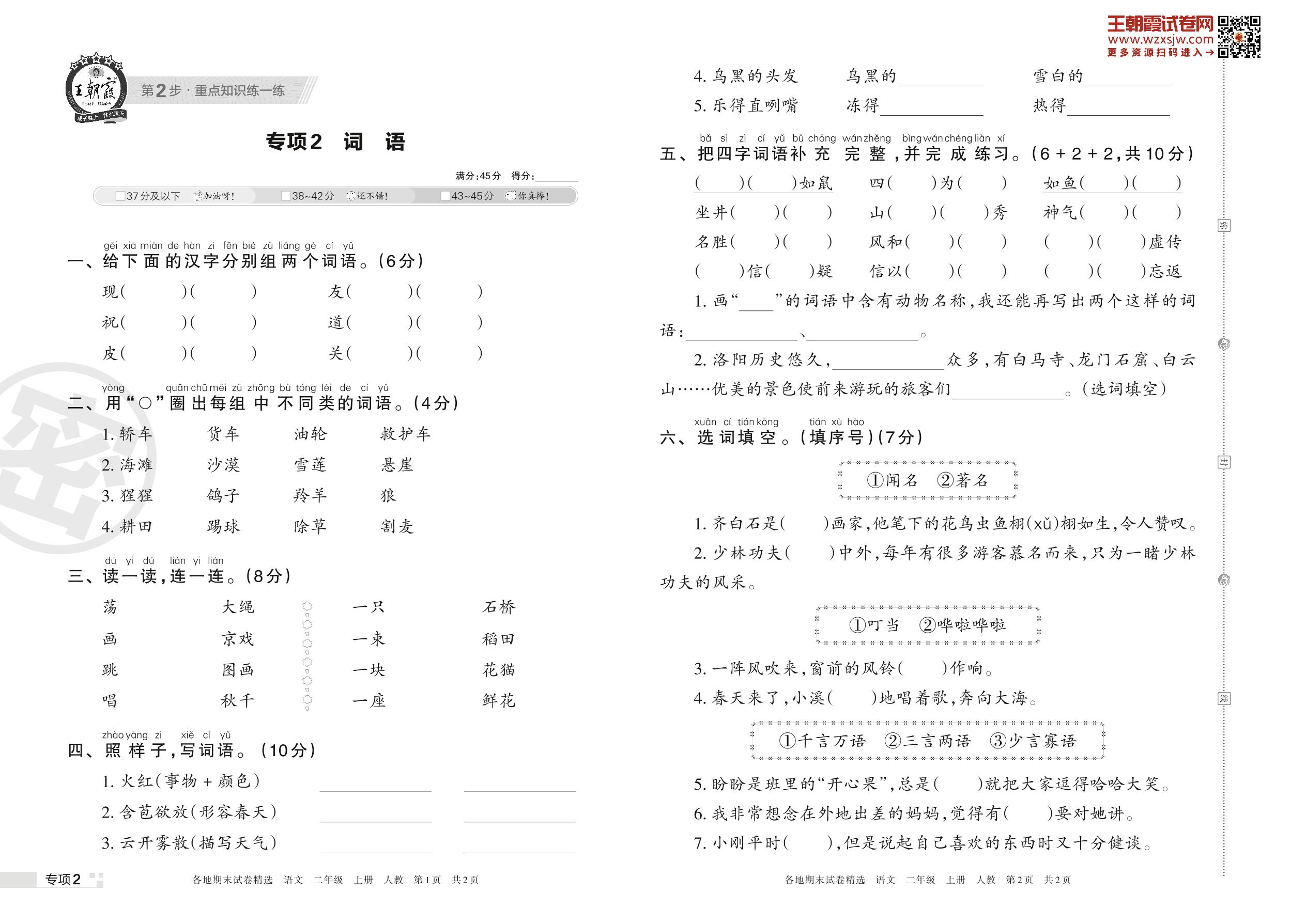 王朝霞期末专项卷——词语二年级上册语文(人教版)【2】