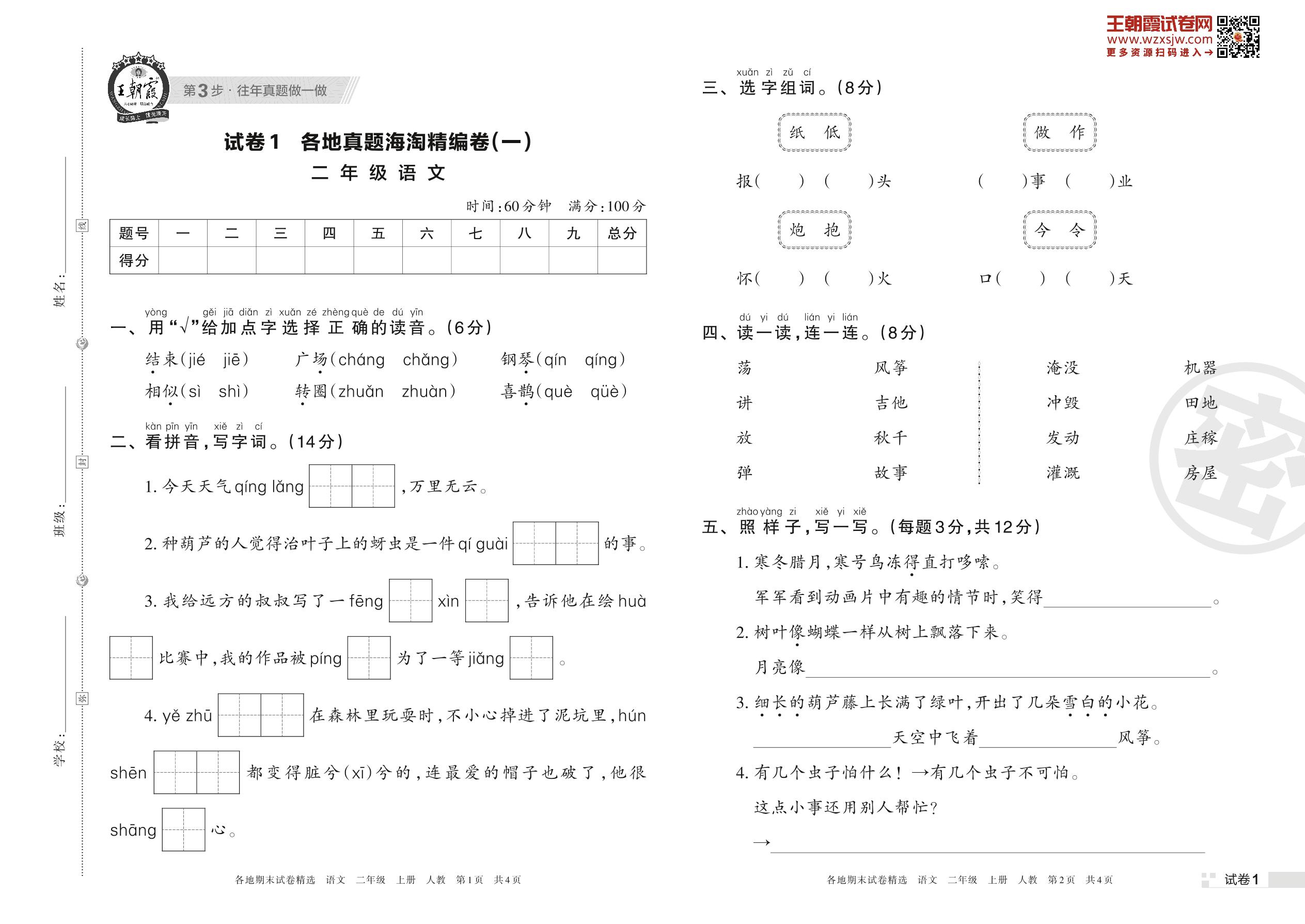 各地真题海淘精编卷(一)二年级上册语文(人教版)【1】