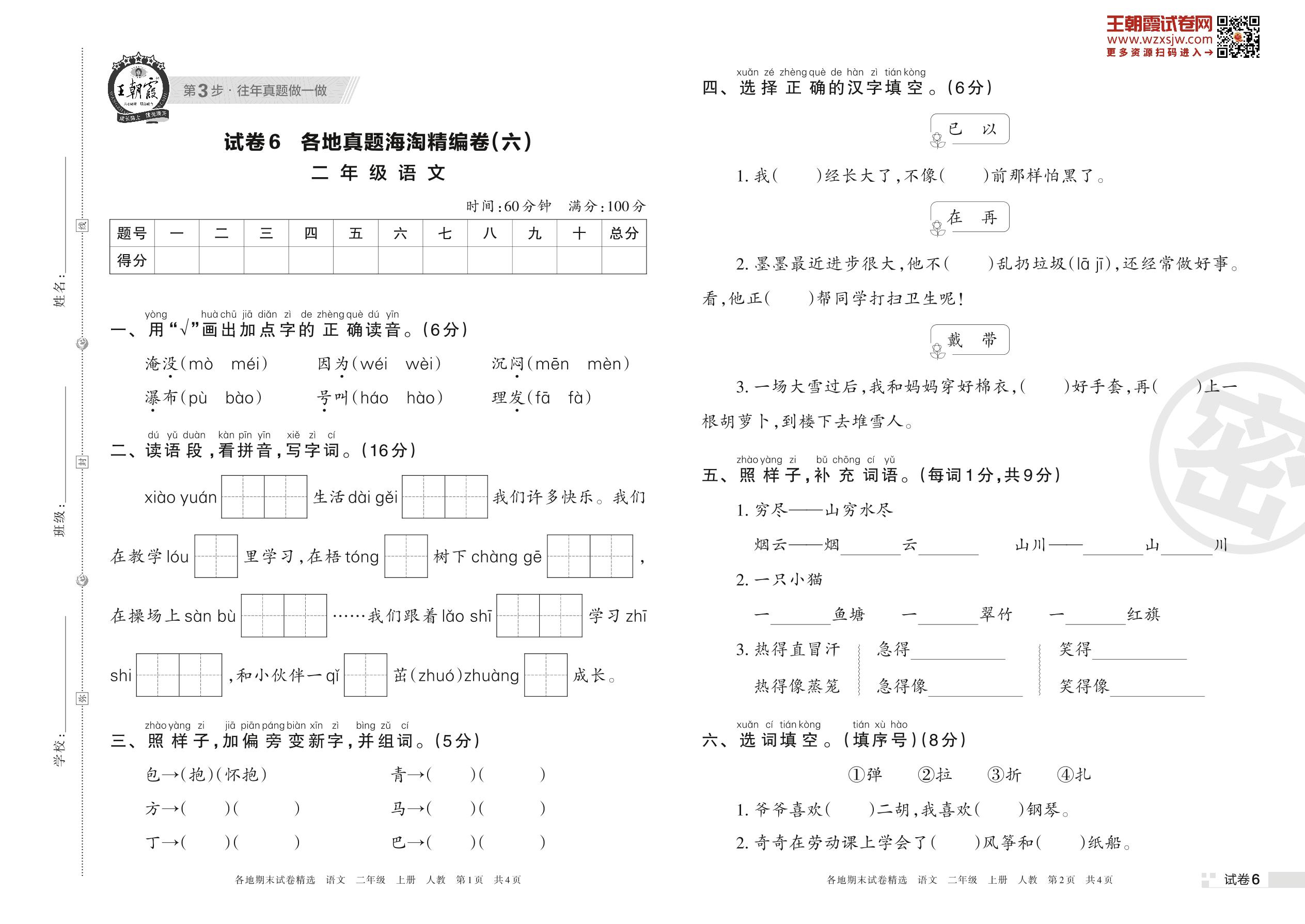 各地真题海淘精编卷(六)二年级上册语文(人教版)【6】