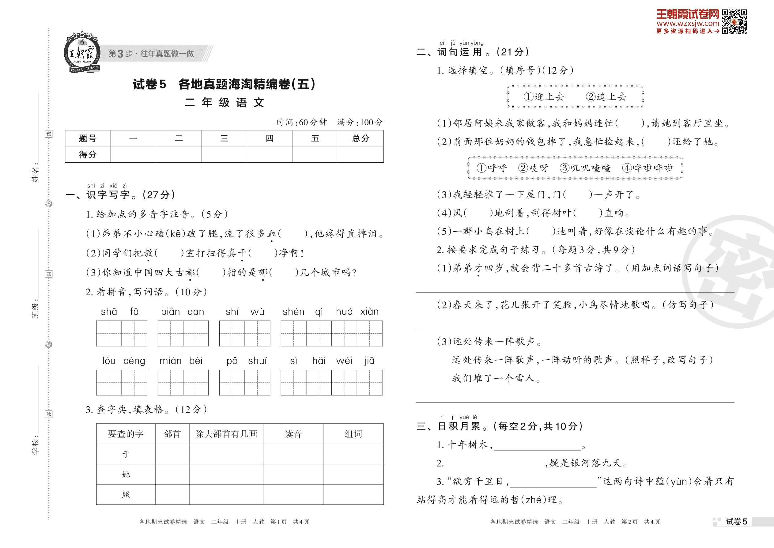各地真题海淘精编卷(五)二年级上册语文(人教版)【5】
