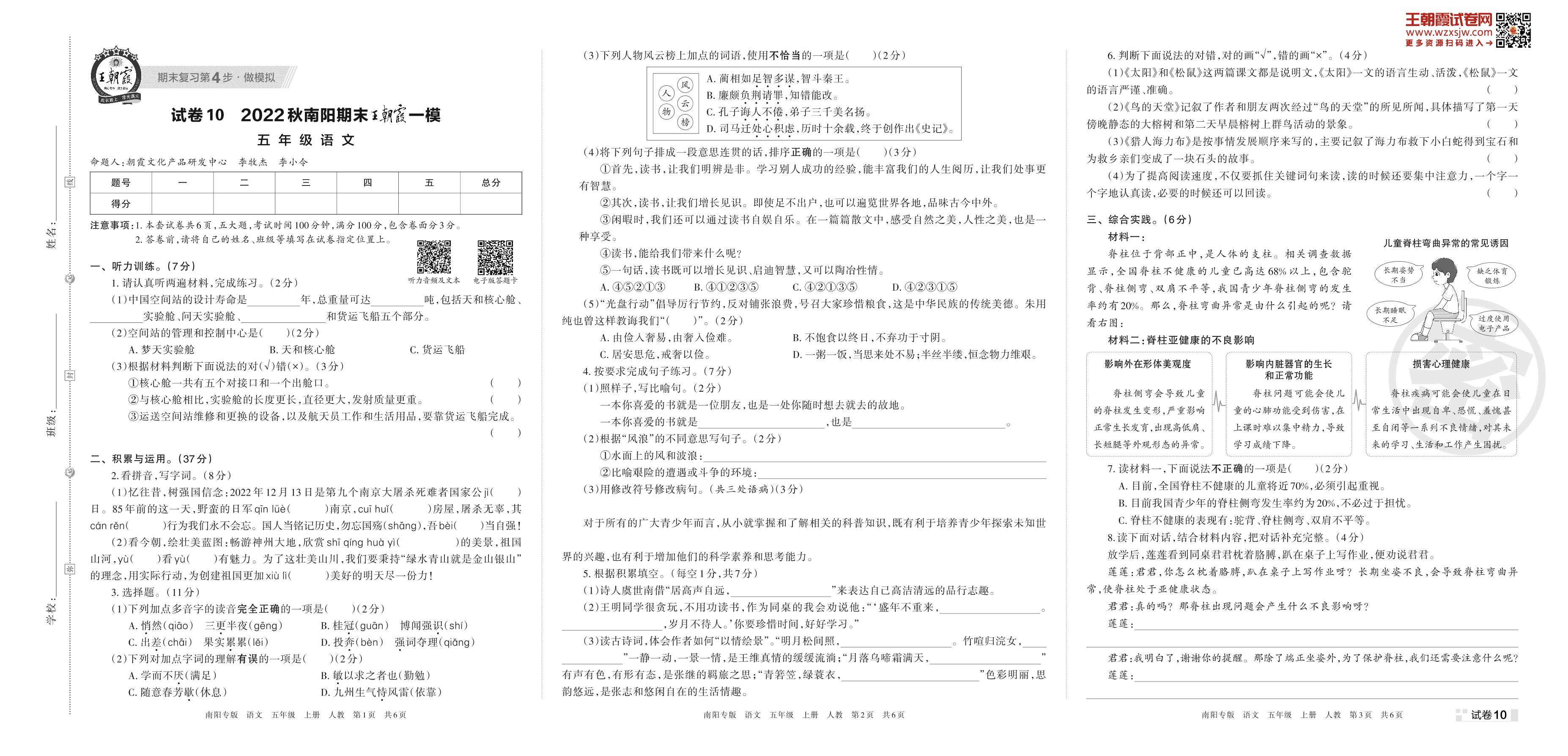 王朝霞期末模拟卷五年级上册语文(人教版)_R221121212403934【10】