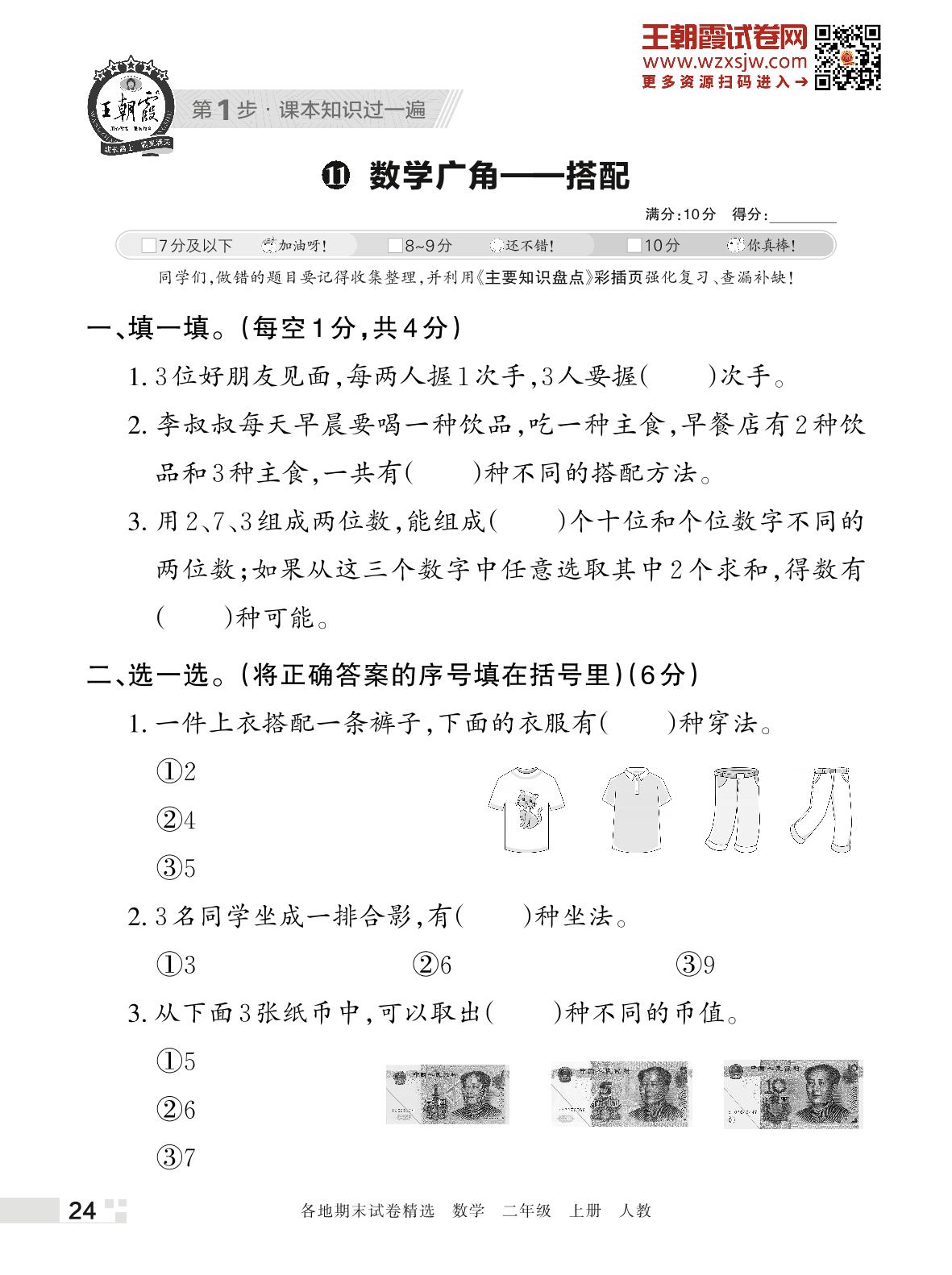 王朝霞期末过课本——11 数学广角:搭配二年级上册数学(人教版)