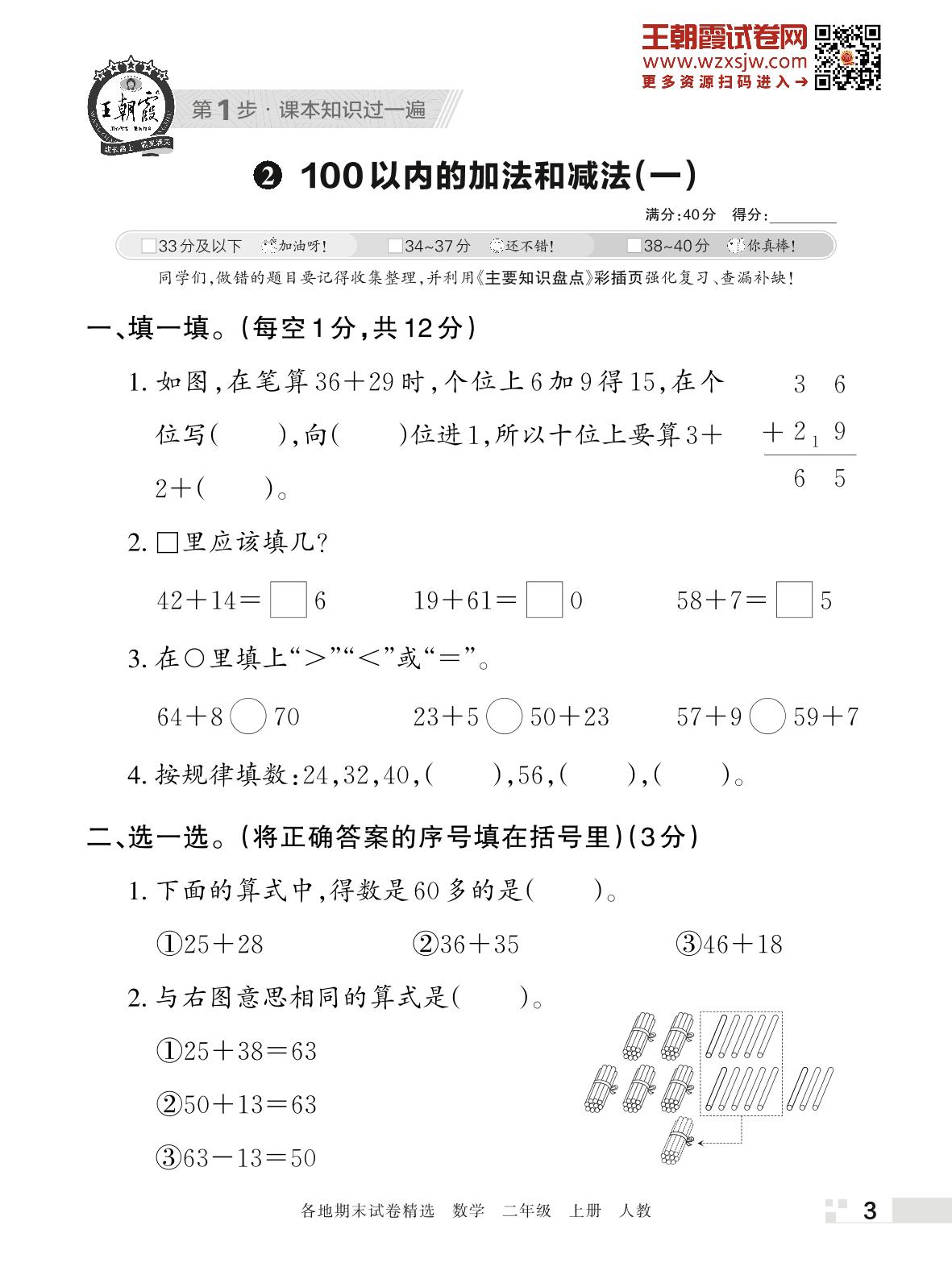 王朝霞期末过课本——2 100以内的加法和减法(一)二年级上册数学(人教版)