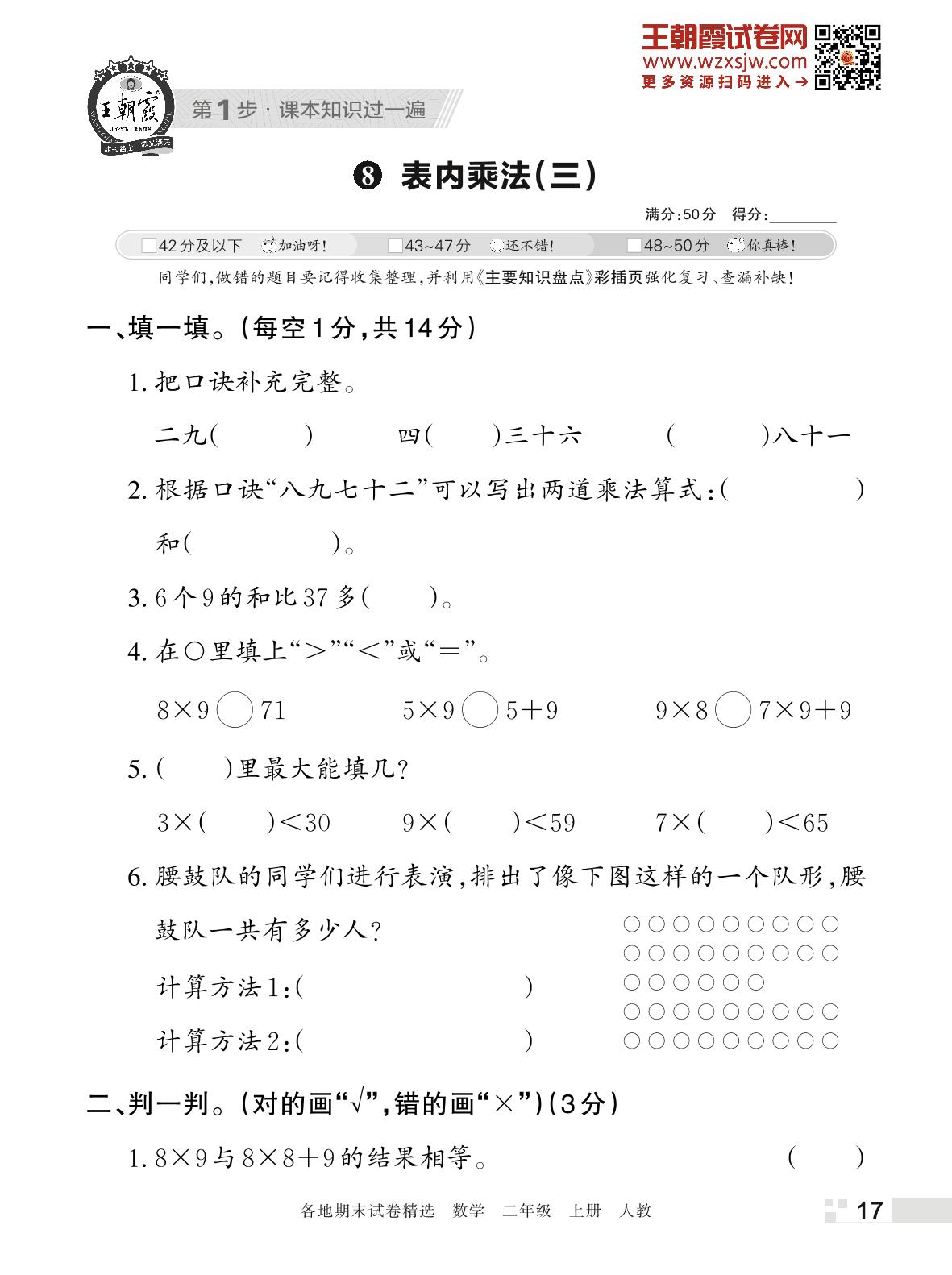 王朝霞期末过课本——8 表内乘法(三)二年级上册数学(人教版)