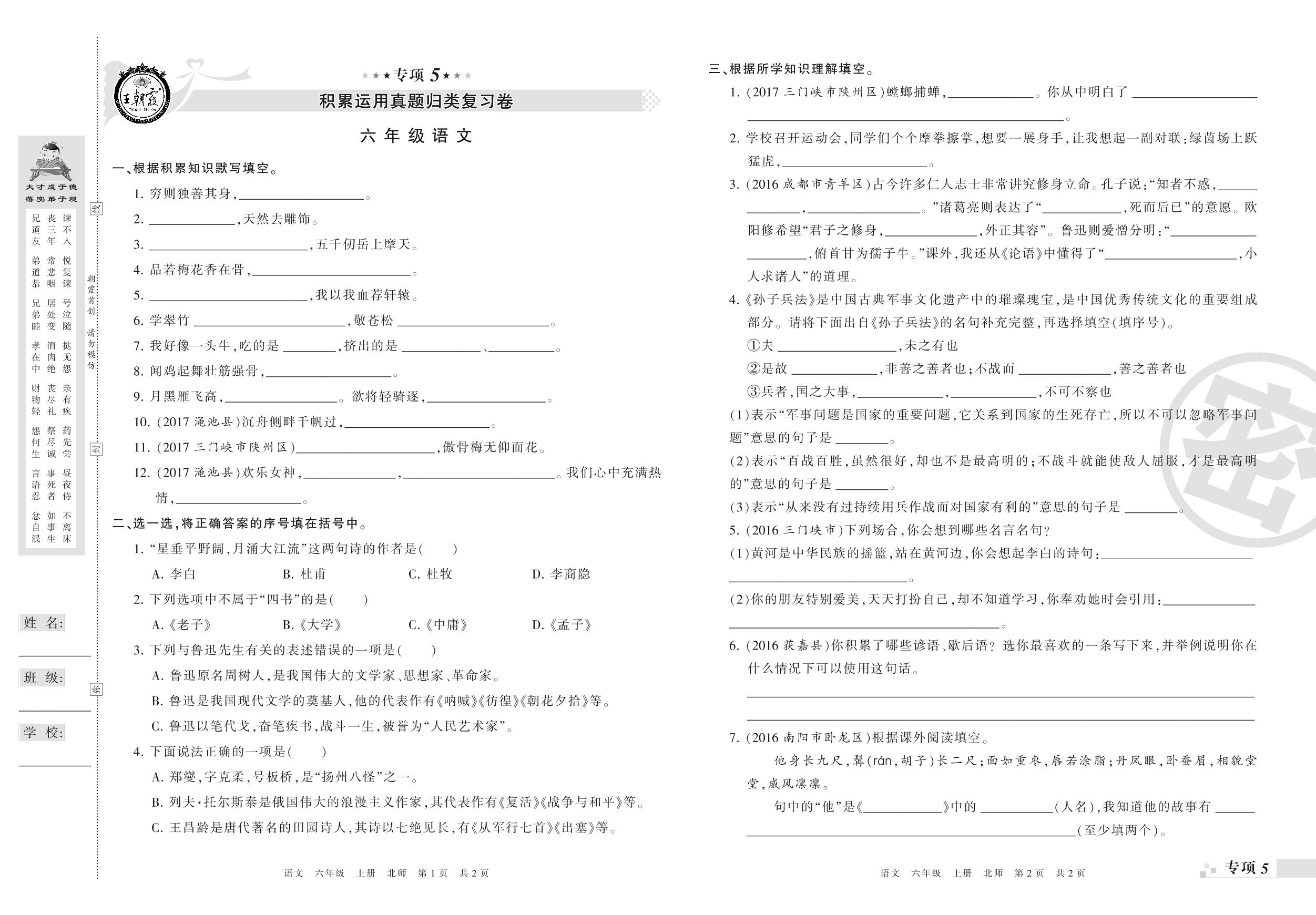 王朝霞期末专项卷——积累运动、课内阅读(一)真题归类复习卷六年级上册语文(北师版)_R210802114647【0】
