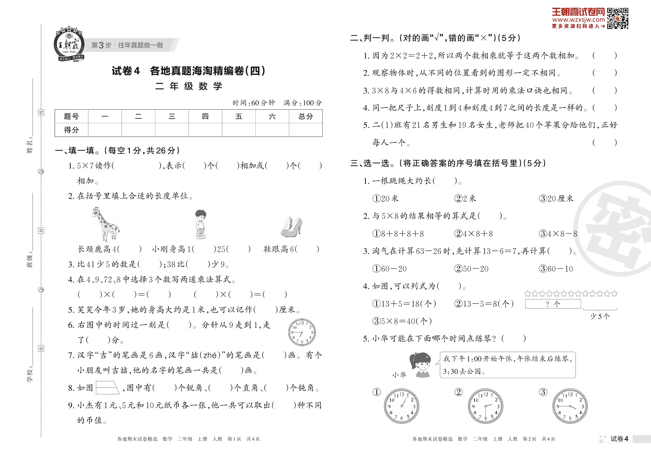 各地真题海淘精编卷(四)二年级上册数学(人教版)【4】