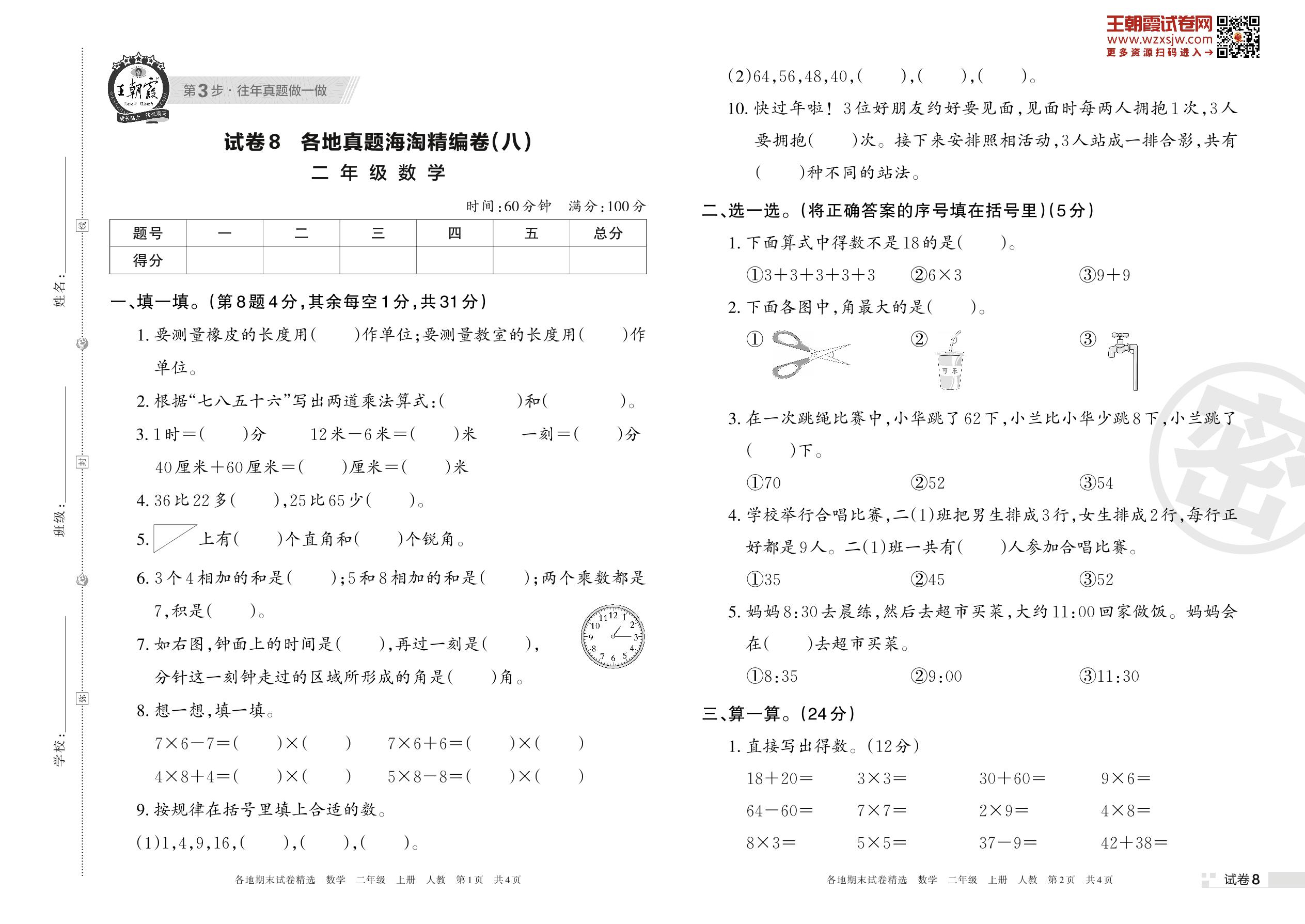 各地真题海淘精编卷(八)二年级上册数学(人教版)【8】