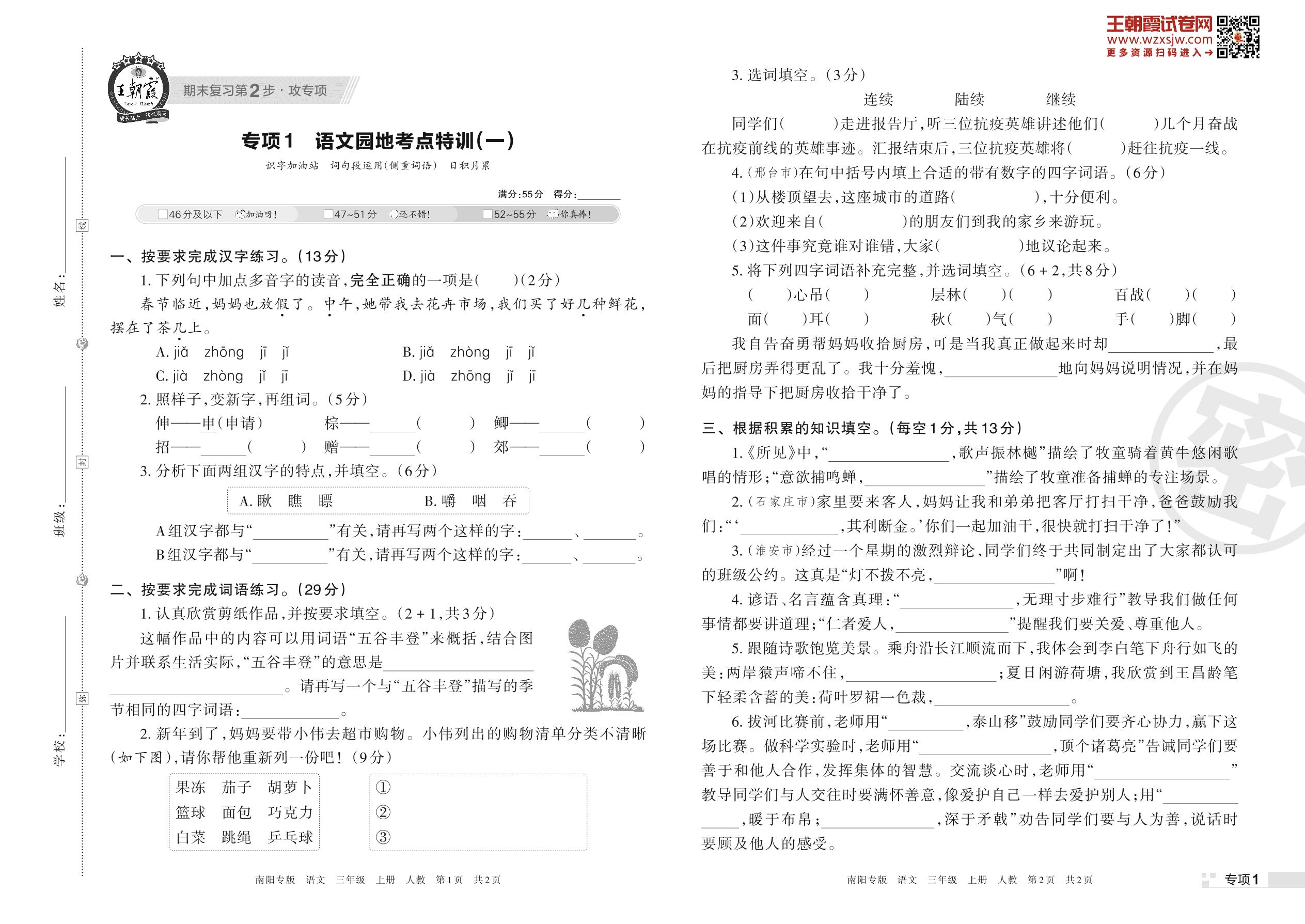 王朝霞期末专项卷——语文园地考点特训(一)三年级上册语文(人教版)_R221121215428604【1】