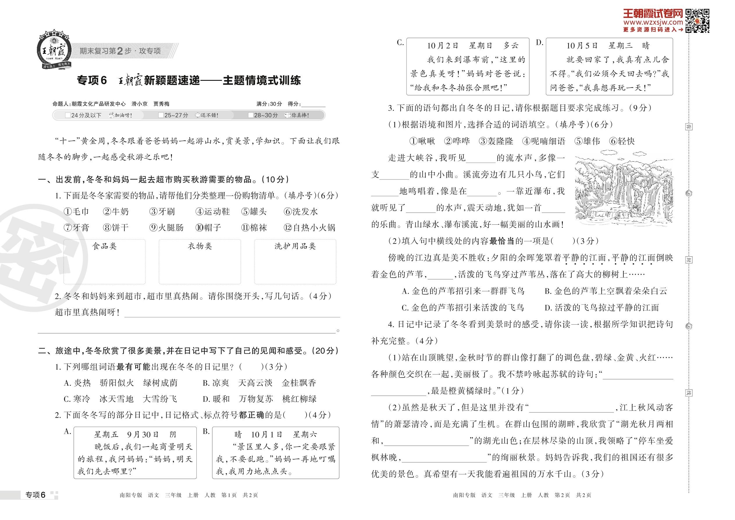 王朝霞期末专项卷——王朝霞新颖题速递:主题情境式训练三年级上册语文(人教版)_R221121215428088【6】