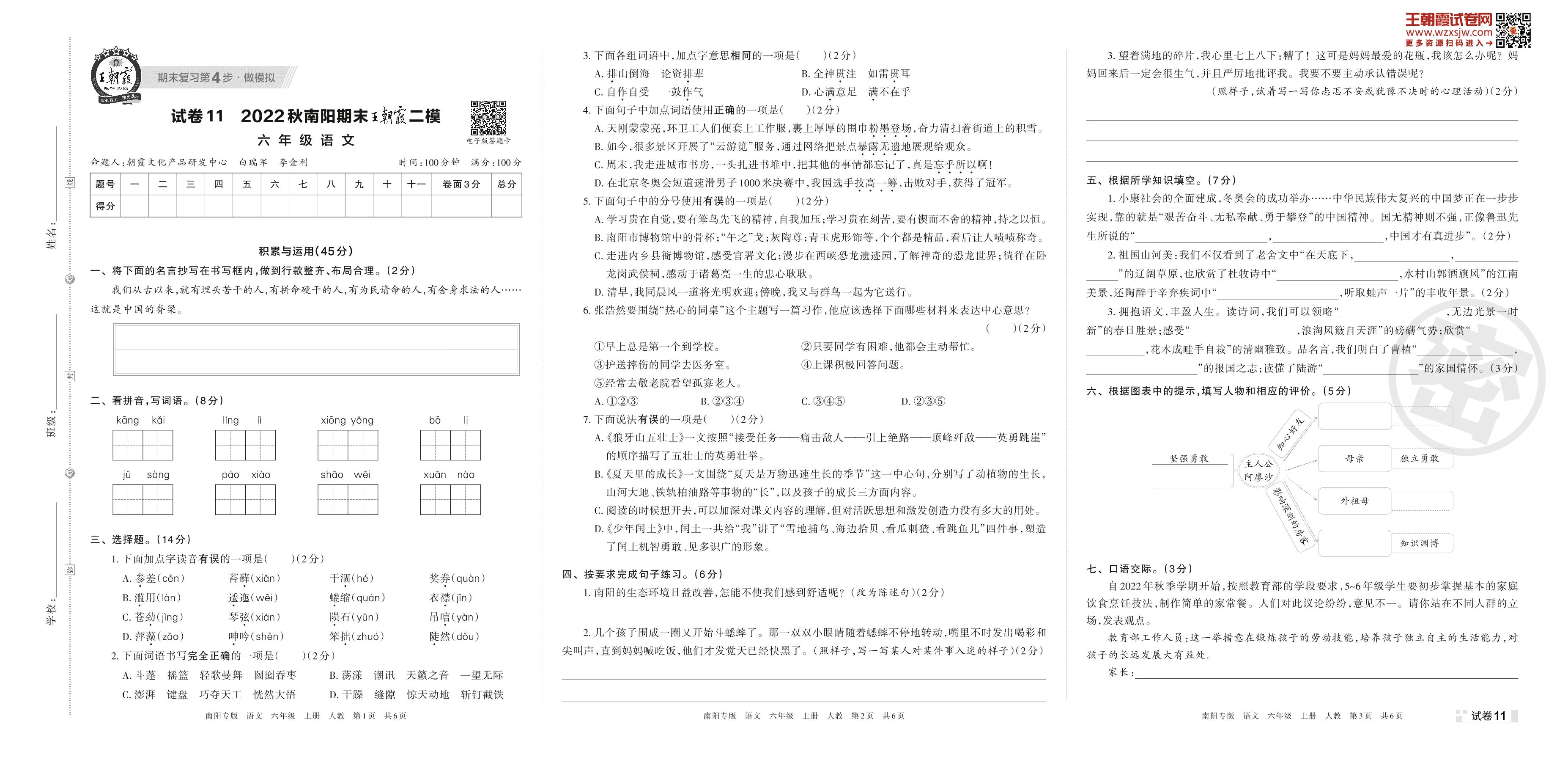 王朝霞期末模拟卷六年级上册语文(人教版)_R221121220742231【11】