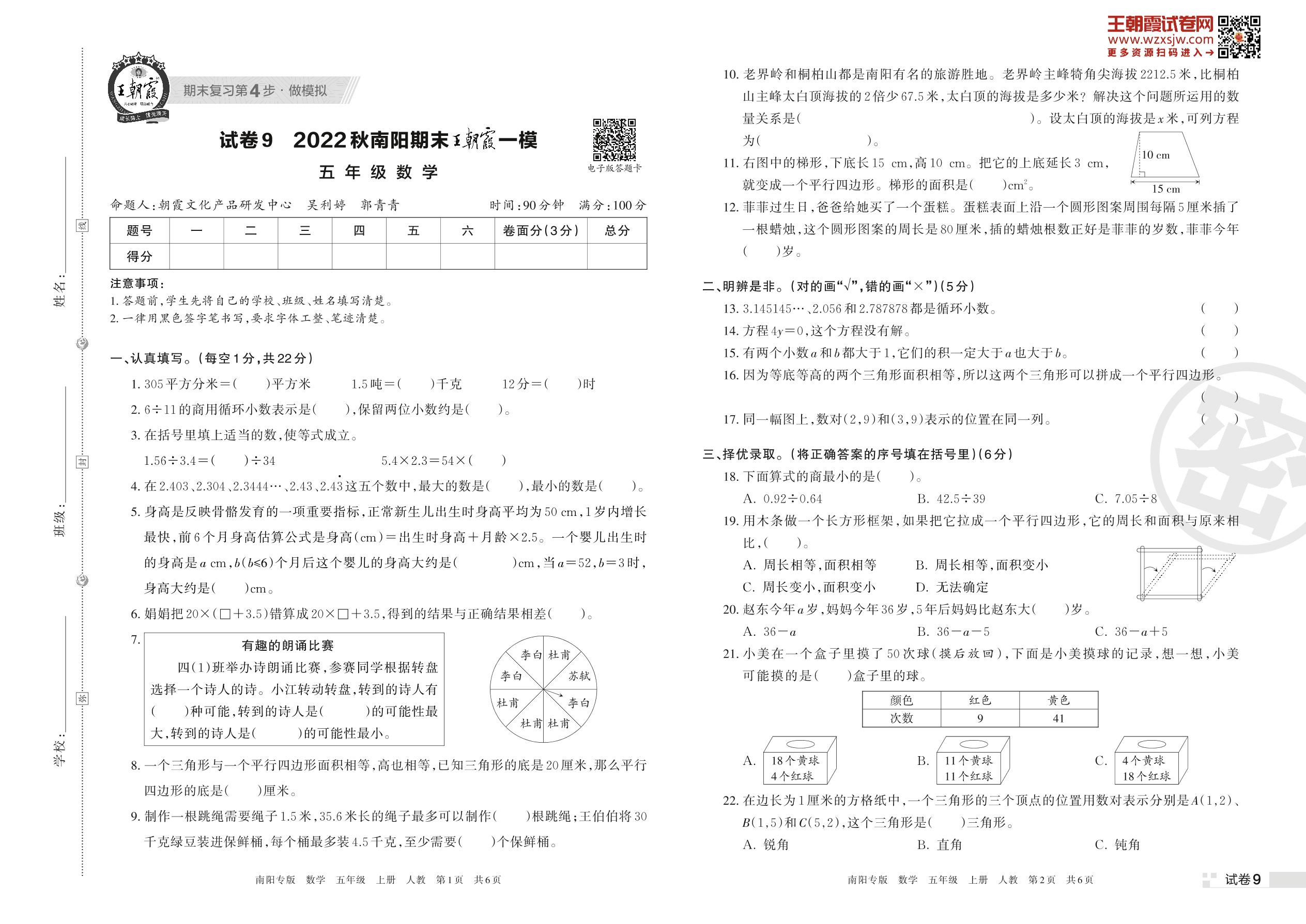王朝霞期末模拟卷五年级上册数学(人教版)_R221121223847168【9】