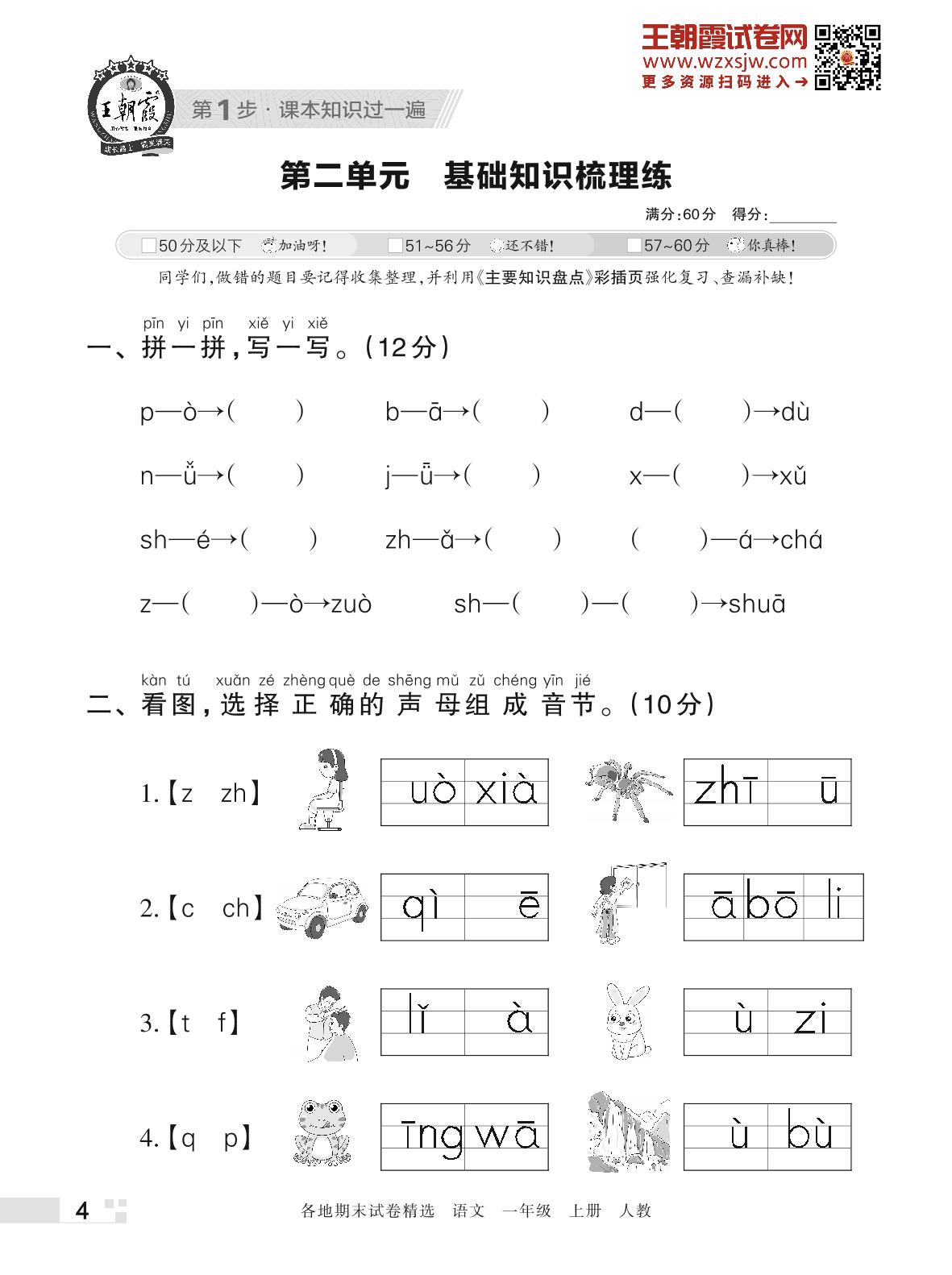 王朝霞期末过课本——第二单元 基础知识梳理练一年级上册语文(人教版)
