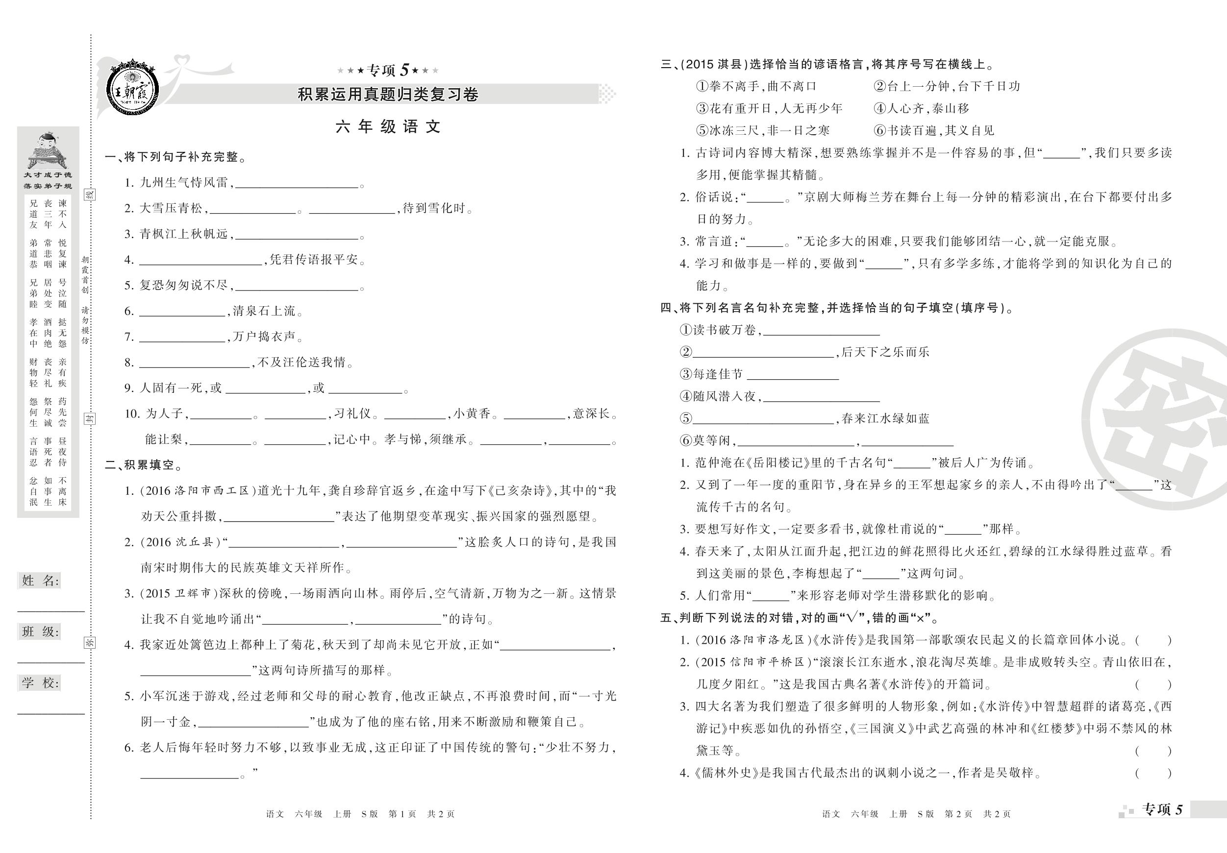 王朝霞期末专项卷——积累运动、课内阅读(一)真题归类复习卷六年级上册语文(S版)_R210802114741【0】