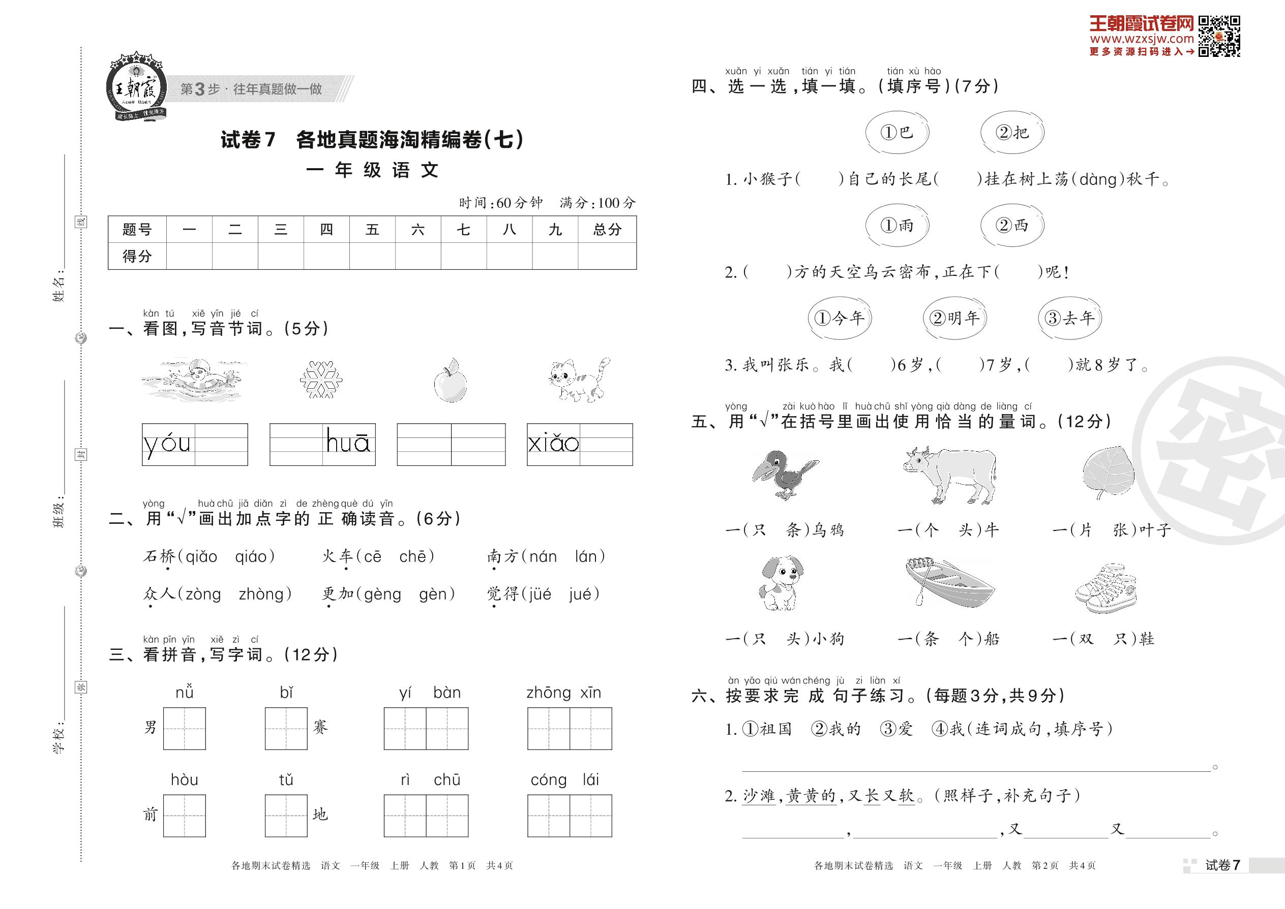 各地真题海淘精编卷(七)一年级上册语文(人教版)【7】