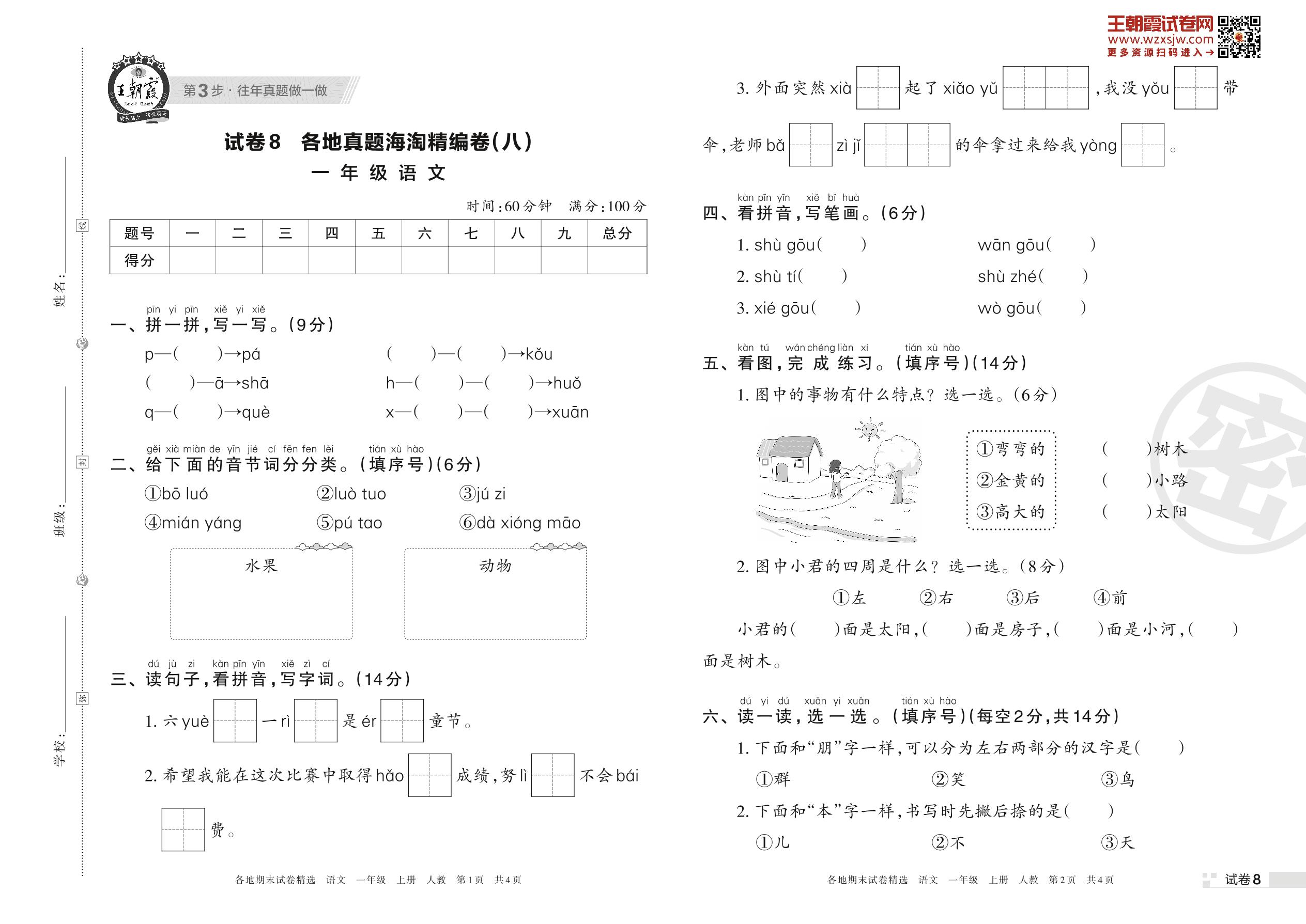 各地真题海淘精编卷(八)一年级上册语文(人教版)【8】