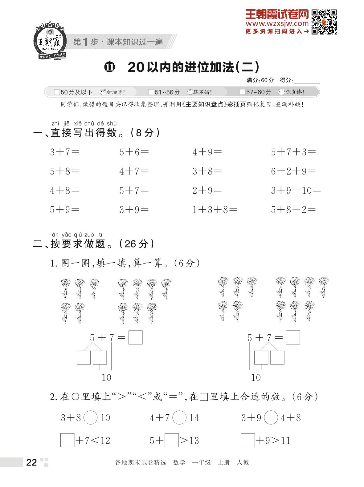 王朝霞期末过课本——11 20以内的进位加法(二)一年级上册数学(人教版)