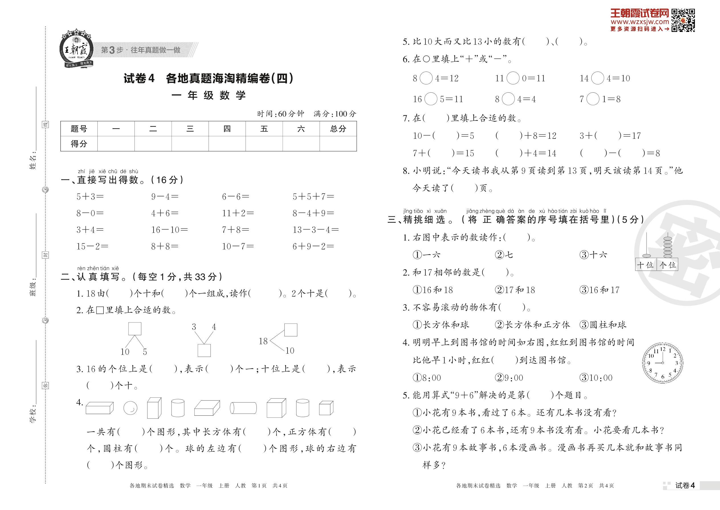 各地真题海淘精编卷(四)一年级上册数学(人教版)【4】
