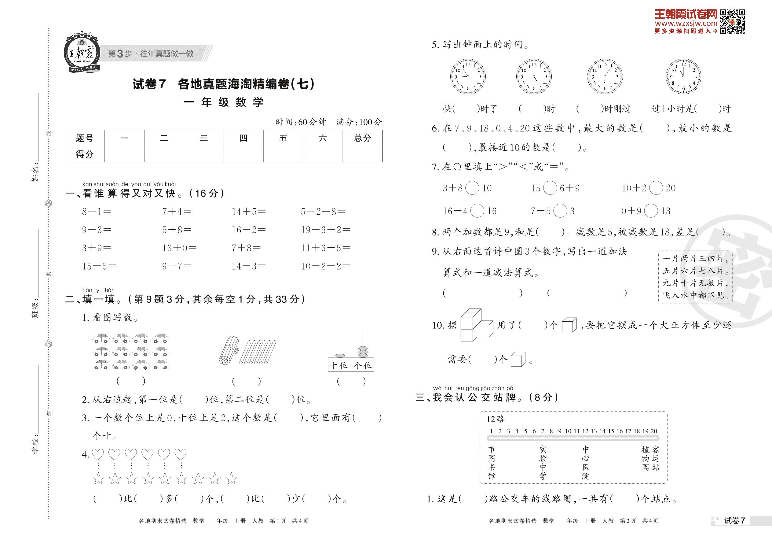 各地真题海淘精编卷(七)一年级上册数学(人教版)【7】