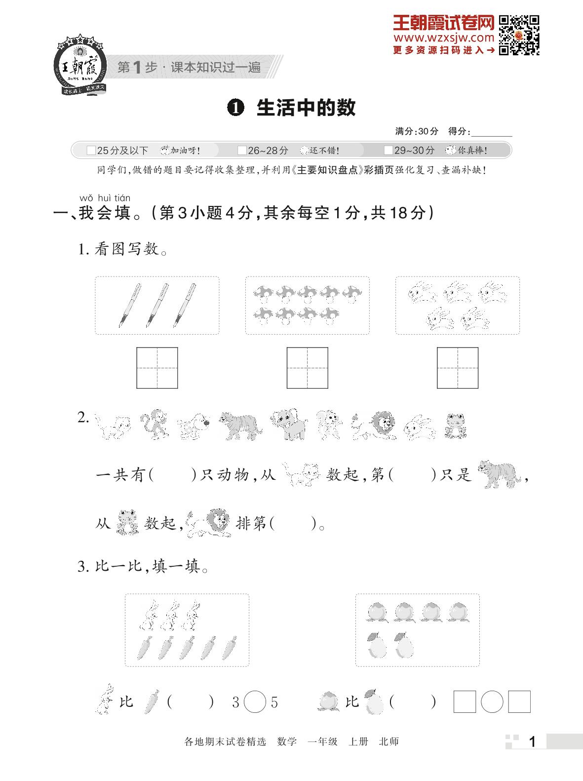 王朝霞期末过课本——1 生活中的数一年级上册数学(北师版)