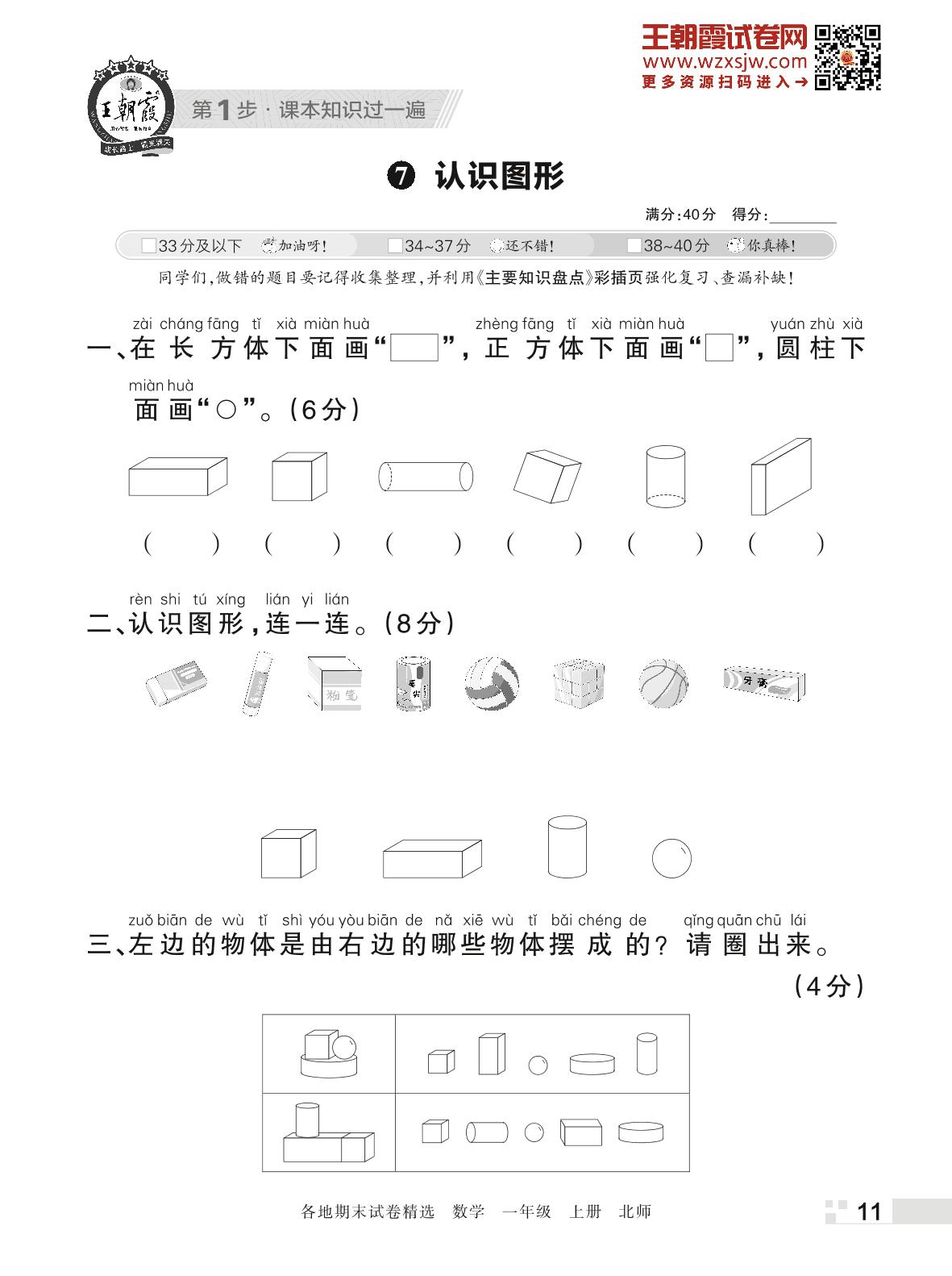 王朝霞期末过课本——7 认识图形一年级上册数学(北师版)