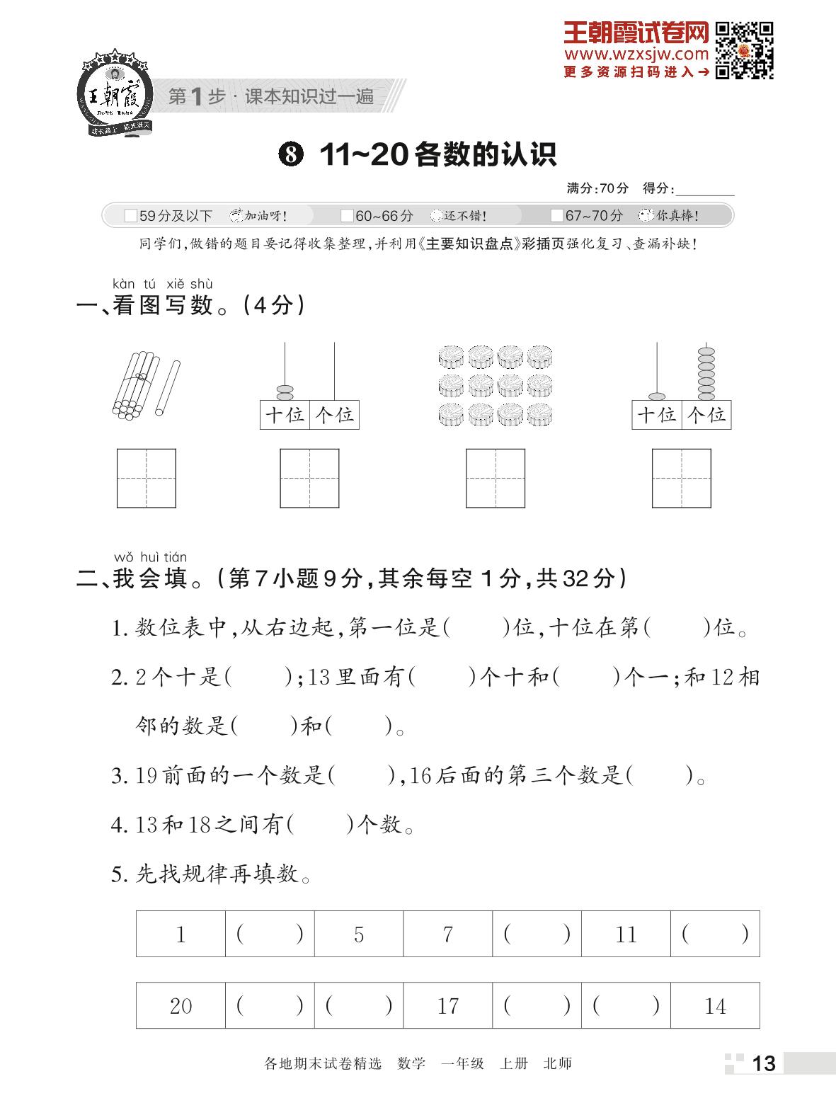 王朝霞期末过课本——8 11~20各数的认识一年级上册数学(北师版)