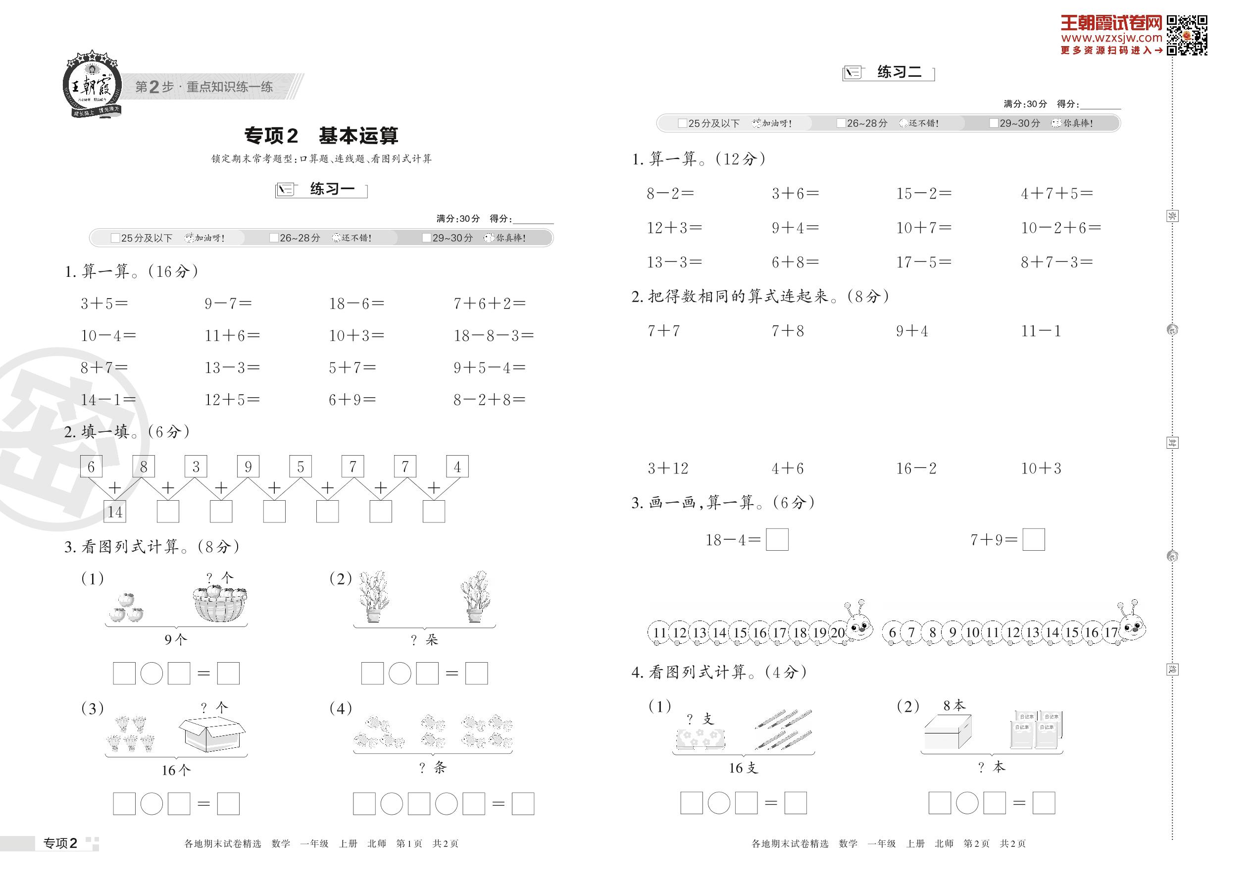 王朝霞期末专项卷——基本运算一年级上册数学(北师版)【2】