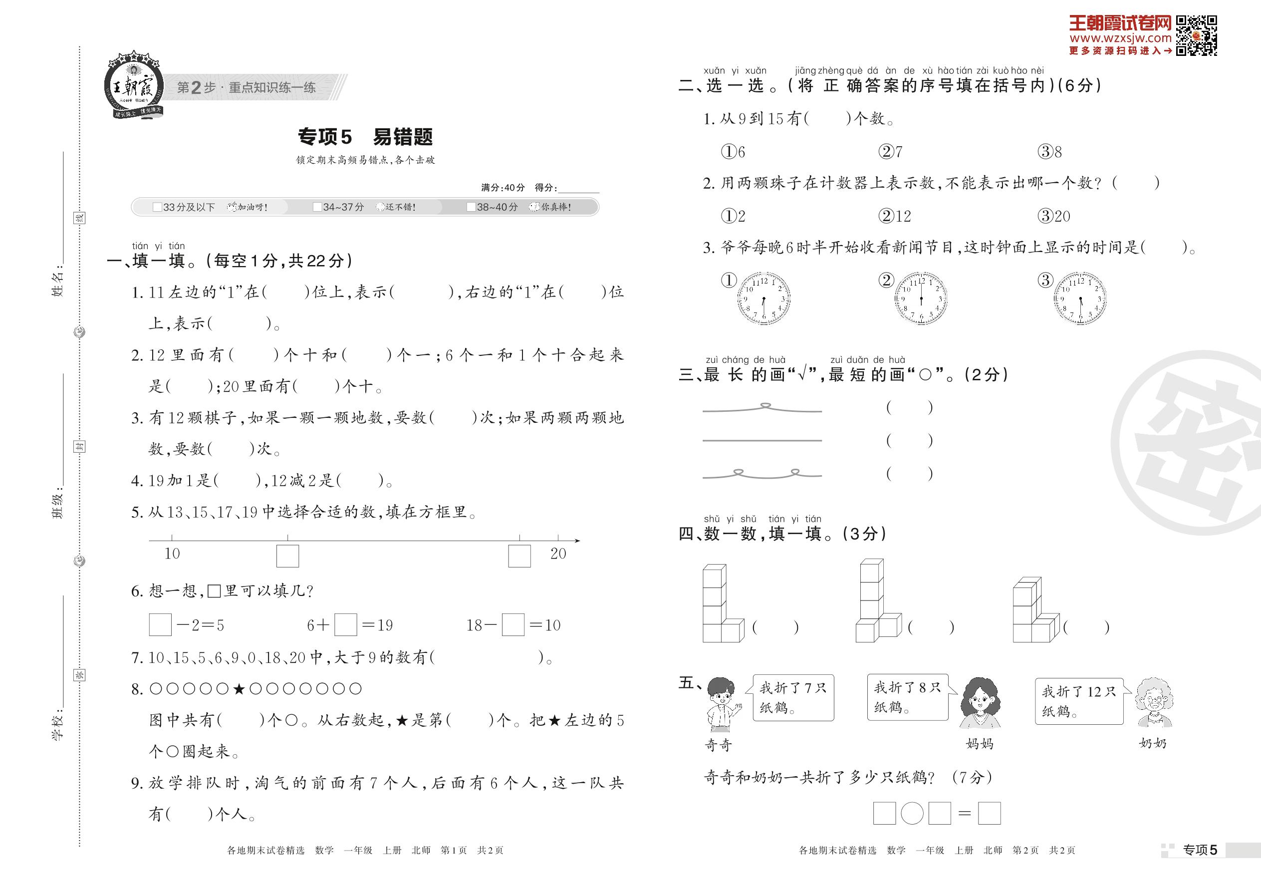 王朝霞期末专项卷——易错题一年级上册数学(北师版)【5】