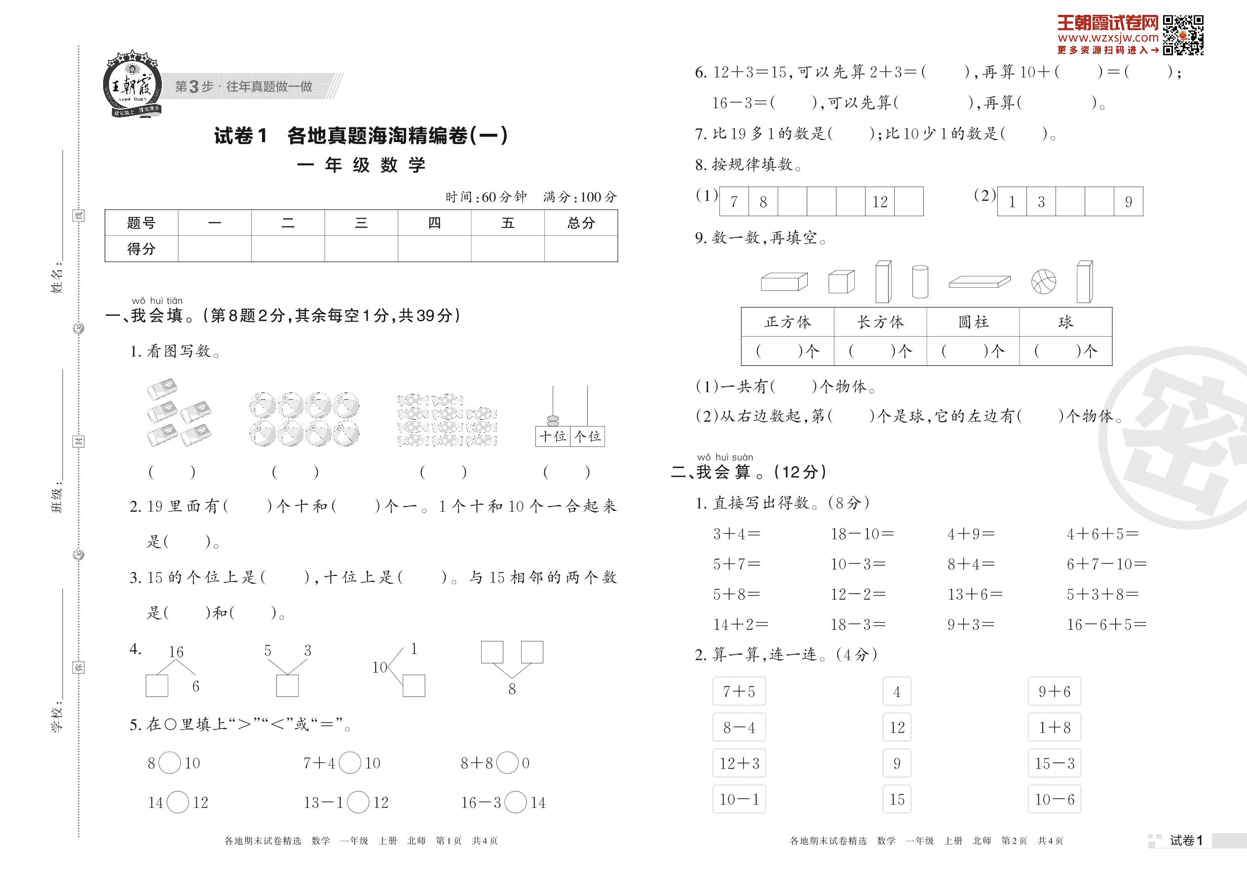 各地真题海淘精编卷(一)一年级上册数学(北师版)【1】