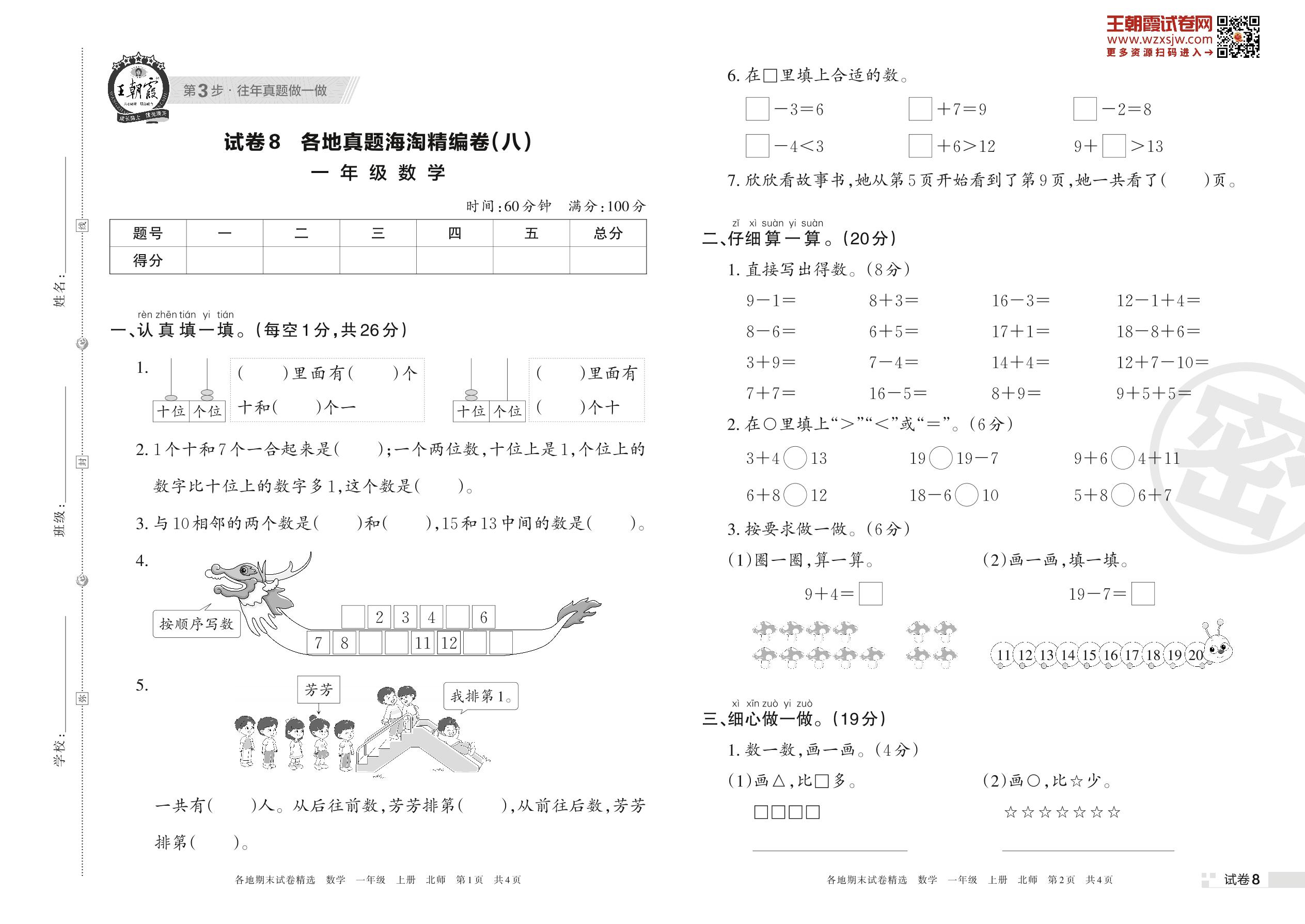 各地真题海淘精编卷(八)一年级上册数学(北师版)【8】